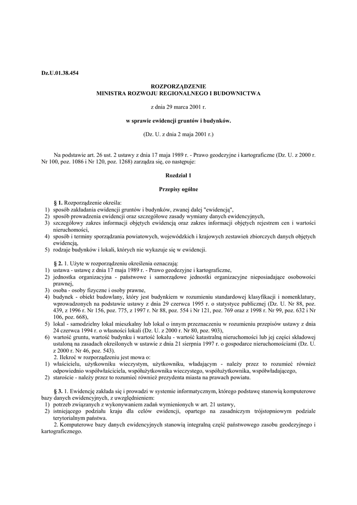 Na podstawie art. 26 ust. 2 ustawy z dnia 17 maja 1989 r. - Prawo geodezyjne i kartograficzne (Dz. U. z 2000 r.
