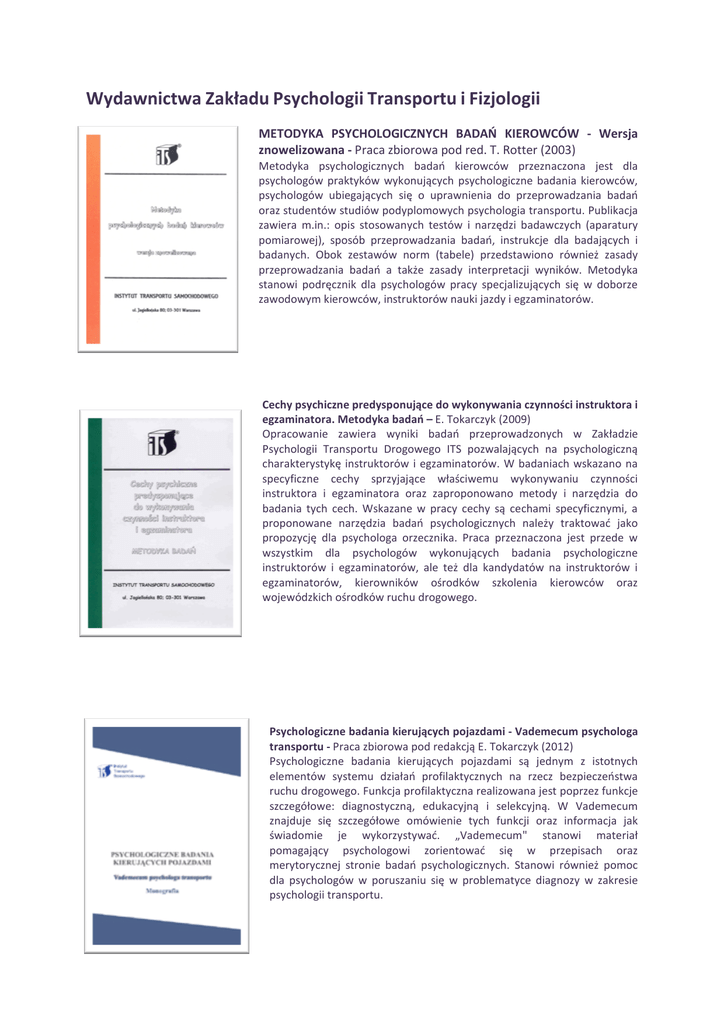 Wydawnictwa Zakładu Psychologii Transportu i Fizjologii