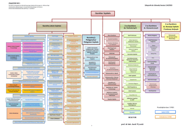 ZAŁĄCZNIK NR 1 Do Statutu Ortopedyczno‐Rehabilitacyjnego Szpitala Klinicznego im. Wiktora Degi Uniwersytetu Medycznego im. Karola Marcinkowskiego w Poznaniu STRUKTURA ORGANIZACYJNA SZPITALA – SCHEMAT Załącznik do Uchwały Senatu 114/2015 Dyrektor Szpitala Naczelny Lekarz Szpitala Z‐ca Dyrektora ds. Technicznych Z‐ca Dyrektora ds. Ekonomicznych Z‐ca Dyrektora ds. Rozwoju Szpitala i Funduszy Unijnych Oddziały Szpitalne Oddział Ortopedii z pododdziałami Pododdział IB Urazowo‐Ortopedyczny Katedra i Klinika Ortopedii i Traumatologii Pododdział IIB Urazowo‐Ortopedyczny Pododdział IIA Ortopedii, Traumatologii i Chirurgii Kolana Klinika Ortopedii Ogólnej, Onkologicznej i Traumatologii Pododdział IA Urazowo‐Ortopedyczny Pododdział E0 Urazowo‐Ortopedyczny i Ortopedii Onkologicznej Pododdział B0 Krótkich Pobytów Urazowo‐Ortopedycznych Oddział Ortopedii i Chirurgii Ręki z pododdziałami Katedra i Klinika Traumatologii, Ortopedii i Chirurgii Ręki Pododdział A0 Traumatologii, Ortopedii i Chirurgii Ręki Pododdział IIC Traumatologii, Ortopedii i Chirurgii Ręki Oddział Ortopedii Dziecięcej z pododdziałami Klinika Ortopedii i Traumatologii Dziecięcej Pododdział IIE Urazowo‐Ortopedyczny Dziecięcy Klinika Chorób Kręgosłupa i Ortopedii Dziecięcej Pododdział IID Urazowo‐Ortopedyczny Dziecięcy Oddział Reumatologii z pododdziałami Katedra i Klinika Reumatologii i Chorób Wewnętrznych Pododdział IIR Reumatologiczny Klinika Reumatologii Pododdział Domek Szwedzki Reumatologiczno‐Rehabilitacyjny i Rehabilitacji Oddział ID Rehabilitacji Ogólnoustrojowej Klinika Rehabilitacji Oddział ODP Dziennego Pobytu – Rehabilitacyjny Oddział IE Rehabilitacji Neurologicznej Oddział OIOMIP Intensywnej Opieki Medycznej i Pooperacyjnej Izba Przyjęć Biuro Przyjęć Ambulatorium Pomocy Doraźnej Urazowo‐ Ortopedycznej Gabinet EKG Blok Operacyjny Apteka Szpitalna Magazyn Implantów Zespół Konsultantów Zakład Terapii Biologicznej Gabinet Terapii Biologicznej Pracownia Mikrochirurgii Badań Czynnościowych Kończyn Pracownie i Gabinety Terapeutyczne Ośrodek Rehabilitacji Leczniczej Pracownia Terapii Zajęciowej Pracownia Psychologiczno‐ Socjalna Gabinet Logopedyczny Dział Ruchu Chorych Lekarz Zakładowy Poradnie Szpitalne Poradnia Chirurgii Urazowo‐ Ortopedycznej Poradnia Chirurgii Urazowo‐ Ortopedycznej dla Dzieci Biuro Dyrektora Naczelna/y Pielęgniarka/ Pielęgniarz Szpitala Asystent Dyrektora Asystenci Dyrektora ds. Prawnych Dział Organizacji i Nadzoru Poradnia Preluksacyjna nadzór i kierowanie pielęgniarskim i niższym personelem medycznym: Oddziały, Pracownie, Poradnie Poradnia Reumatologiczna Pełnomocnik ds. Praw Pacjenta Pełnomocnik ds. Kontroli Zarządczej Poradnia Rehabilitacyjna Specjaliści ds. Epidemiologii Dział Kontroli Wewnętrznej Poradnia Konsultacyjna Ortopedii Dział Sekretarek Medycznych Poradnia Konsultacyjna Ortopedii Dziecięcej Centralna Sterylizatornia Poradnia Konsultacyjna Chirurgii Ręki Centralna Gipsownia Dział Kadr Dział Techniczny Sekcja Aparatury Medycznej i Sprzętu Sekcja Techniczno – Remontowa Główny Energetyk Szpitala Kancelaria Szpitala Dział Dokumentacji Medycznej, Naukowej i Administracji Dział Finansowo‐ Księgowy Sekcja Inwentaryzacji i Ewidencji Majątku Sekcja Płac Kasa Dział Controllingu i Analiz Biblioteka Medyczna Specjalista ds. Kontroli Zarządczej Sekcja Koderów i Dokumentacji Medycznej Pełnomocnik ds. Jakości Dział Logistyki Pełnomocnik ds. Ochrony Informacji Niejawnych Poradnia Konsultacyjna Reumatologii Specjalista ds. Telekomunikacji Poradnia Konsultacyjna Rehabilitacji Specjalista ds. Serwisu Technicznego Gabinet Zabiegowy Zakładowy Inspektor ds. Przeciwpożarowych i Obronnych Zaopatrzenie Centralny Magazyn Dział Gospodarczy Dział Czystości Gabinet Opatrunkowy Aseptyczny Pełnomocnik ds. Rozwoju Szpitala i Marketingu Główny Księgowy Kapelan Szpitala Gabinet Opatrunkowy Septyczny Dział Zamówień Publicznych i Sprzedaży Dział Rozliczeń i Sprawozdawczości Dział Informatyki Administrator Bezpieczeństwa Informacji Dział Żywienia Dezynfektornia Zakładowy Inspektor ds. BHP Inspektor Ochrony Radiologicznej Pracownie i Gabinety Diagnostyczne Internat Pracownia RTG Przedsiębiorstwa O‐RSK: Pływalnia Szpital O‐RSK REKTOR Ambulatorium O‐RSK Pracownia USG Pracownia EMG i ENG Centralne Laboratorium 1 prof. dr hab. Jacek Wysocki