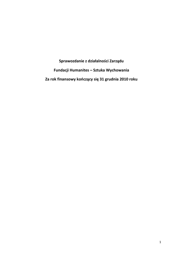 Sprawozdanie z działalności Zarządu Fundacji Humanites za rok 2010