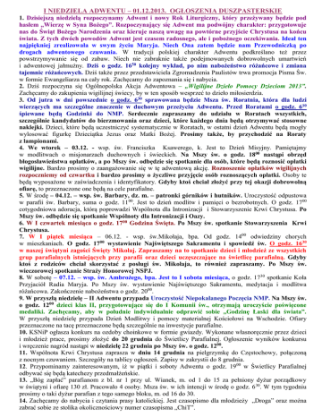 i niedziela adwentu – 01.12.2013. ogłoszenia duszpasterskie