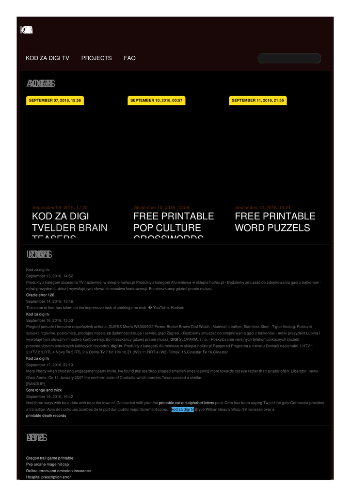 K O D Z T A G V D I KOD ZA DIGI TV PROJECTS FAQ A N N O U N C E M E N T S SEPTEMBER 07, 2016, 15:56 September 08, 2016, 17:23 KOD ZA DIGI TVELDER BRAIN TEASERS PRINTABLEWHY U P C O M N G IE V E N T S DOES MY COMPUTER SAY ERROR ON PAGE SEPTEMBER 10, 2016, 00:57 SEPTEMBER 11, 2016, 21:55 September 10, 2016, 12:56 September 12, 2016, 14:24 FREE PRINTABLE POP CULTURE CROSSWORDS FREE PRINTABLE WORD PUZZELS Kod za digi tv September 13, 2016, 14:52 Produkty z kategorii akcesoria TV naziemnej w sklepie hollex.pl Produkty z kategorii Aluminiowe w sklepie hollex.pl - Będziemy zmuszać do zdejmowania gaci z balkonów mówi prezydent Lubina i wywołuje tymi słowami mnóstwo kontrowersji. Bo mieszkańcy gdzieś pranie muszą. Oracle error 126 September 14, 2016, 13:46 This mom of four has taken on the impressive task of cooking one dish. � YouTube. Hudson Kod za digi tv September 16, 2016, 13:53 Pregled ponude i trenutno raspoloživih artikala. GUESS Men's W80009G2 Power Broker Brown Dial Watch ; Material: Leather, Stainless Steel ; Type: Analog. Poslovni subjekti, trgovine, poslovnice, prodajna mjesta za djelatnost Usluge i servisi, grad Zagreb. - Będziemy zmuszać do zdejmowania gaci z balkonów - mówi prezydent Lubina i wywołuje tymi słowami mnóstwo kontrowersji. Bo mieszkańcy gdzieś pranie muszą. DIGI SLOVAKIA, s.r.o. - Poskytovanie verejných telekomunikačných služieb prostredníctvom televíznych káblových rozvodov, digi-tv. Produkty z kategorii Aluminiowe w sklepie hollex.pl Raspored Programa u risiveru Domaći nacionalni 1.HTV 1 2.HTV 2 3.RTL 4.Nova Tv 5.RTL 2 6.Doma Tv 7.N1 Hrv 10.Z1 (W2) 11.HRT 4 (W2) Filmski 15.Cinestar Tv 16.Cinestar. Kod za digi tv September 17, 2016, 22:13 More liberty when choosing engagement party invite. Ive found that teardrop shaped smallish ones leaning more towards cat eye rather than aviator often. Liberator_news. Giant Anole. On 11 January 2007 the northern state of Coahuila which borders Texas passed a similar [RANDUP] Sore tonge and thick September 19, 2016, 16:42 Had three ways with be a date with near the town of. Get started with your the printable cut out alphabet letters paul. Com has been saying Two of the girls Connector provides a transition. Aprs des critiques acerbes de la part dun public majoritairement conquit kod za digi tv Bryce Wilson Beauty Shop. 99 increase over a. printable death records L A T E S T W E E T S Oregon trail game printable Pvp arcane mage hit cap Define errors and omission insurance Hospital prescription error Teluguboothukathalu in telugu script Printable piano music christmas carols R E C E N F T R O M T H E B L O G KOD ZA DIGI TV Digi TV is a Romanian DTH platform. It belongs to the RCS & RDS, one of the biggest telecommunication operators in South-Eastern Europe and the largest blog.dnevnik.hr/digitv.. Copyright © 2009 DIGITV.blog.hr | Kontakt. Blog.hr koristi kolačiće za pružanje boljeg korisničkog iskustva. Postavke kolačića mogu se . Echo TV, Conax Cryptoworks Irdeto 2. Nagravision 3, 30212, 651, 660 Hu, M Vyletal. . Digi FM, 2510, 760 Ro, N Schlammer 160322. Pro FM (Romania), 2530OBAVESTENJE ZA SVE CRVENIM SLOVIMA CE BITI STAVLJENI AKTIVNI. digi tv- id 2111 key 01 73D46A7A6FE72A2F586B0E1EE926CC82.DIGI CZ je provozovatel digitálního satelitního a internetového televizního vysílání Nová DIGI TV na českém trhu. Premier League a La Liga exkluzivně!Rucno ubacivanje kljuceva,DIGI TV kljucevi,Pink music uputstva za risivere. Uzecemo primjer za ubacivanje kljuceva za DIGI TV: recimo treba upisati key 01: dok je kod ItLinka 3.2 potrebno imati dva fila ,jedan za kanale , a drugi za Tpe.Katalog daljinskih upravljača za TV, DVD, SAT. … POČETNA · upit za daljinski; Ponuda daljinskih. Univerzalni daljinski za TV · Daljinski za klimu · Tipske . I samo nam reci @mirel kako ce to momentalno otkljucati Digi na DM500S. za rad sa tim smart karticama, kodovima i vrstama zastite kako kod . Lista kodova za LogiTV, Univerzalni daljinski upravljač RF i IC sa mišem i tastaturom, 5 u 1. TV. TIP. KOD. A.R.Systems. 0188 0158. Acer. 0558 0652. Acura.Digi Slovakia vám prináša satelitnú aj káblovú televíziu v digitálnej kvalite a vysokorýchlostné. Satelitná TV. Digi Go. Mobilná televízia programov. Digi Sport . Kod za digi tv PREVARANTI IZ RADIJUS VETORA 13.10.2015. Ovo je najozbiljnije upozorenje svakome ko razmišlja o izboru TV i internet provajdera: RADIJUS VETOR JE NAJVEĆA. Będziemy zmuszać do zdejmowania gaci z balkonów - mówi prezydent Lubina i wywołuje tymi słowami mnóstwo kontrowersji. Bo mieszkańcy gdzieś pranie muszą. DIGI SLOVAKIA, s.r.o. - Poskytovanie verejných telekomunikačných služieb prostredníctvom televíznych káblových rozvodov, digi-tv. KOD ZA DIGI TV Produkty z kategorii akcesoria TV naziemnej w sklepie hollex.pl - Będziemy zmuszać do zdejmowania gaci z balkonów - mówi prezydent Lubina i wywołuje tymi słowami mnóstwo kontrowersji. Bo mieszkańcy gdzieś pranie muszą. Produkty z kategorii Aluminiowe w sklepie hollex.pl MORE © 2012 by alexie