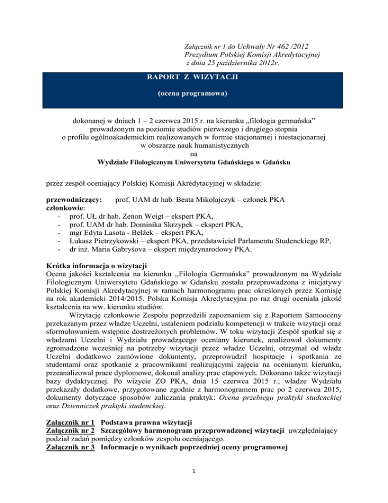 raport z wizytacji - Polska Komisja Akredytacyjna