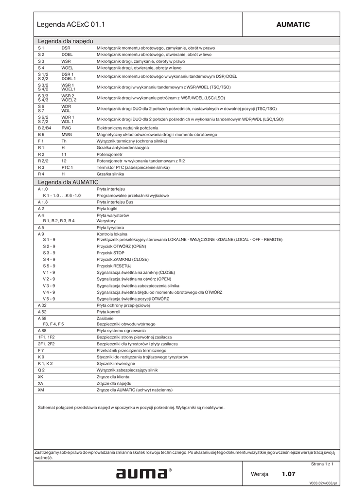 Legenda dla napędu Legenda dla AUMATIC Wersja