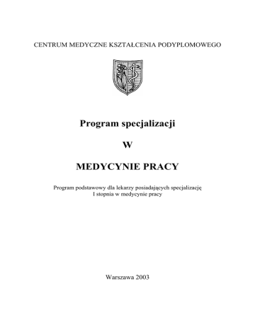 Program specjalizacji W MEDYCYNIE PRACY