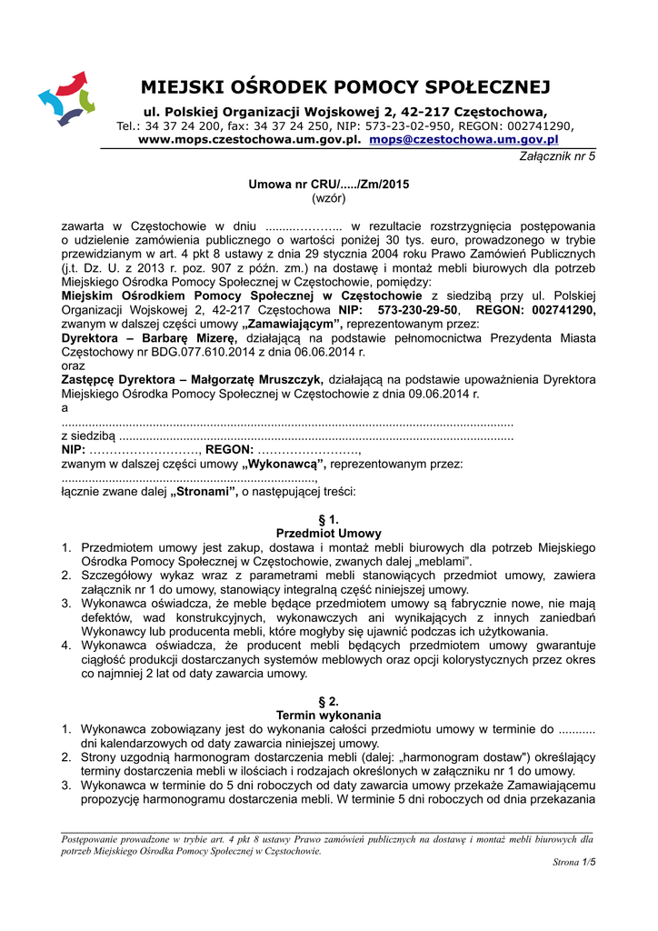 Wzór umowy - BIP - Miejski Ośrodek Pomocy Społecznej w