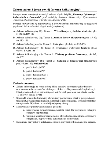 Zakres zajęć 3 (oraz ew. 4) (arkusz kalkulacyjny)