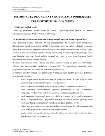 Informacja dla klienta dotycząca pobierania i transportu próbek wody