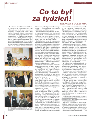 V ET-IMPREZY WETERYNARIA W PRAKTYCE Co to był za tydzień! RELACJA Z OLSZTYNA Fot. J. Pająk W dniach od 12 do 18 września 2004 roku Uniwersytet Warmińsko-Mazurski w Olsztynie stał się światowym centrum medycyny weterynaryjnej. Ponad 400 lekarzy weterynarii różnych narodowości uczestniczyło w Sympozjum Patologii, Dniu Edukacyjnym, 22. Kongresie Europejskiego Towarzystwa Patologii Weterynaryjnej (ESVP) i 6. Kongresie Europejskiego Towarzystwa Klinicznej Patologii Weterynaryjnej (ESVCP). Po raz pierwszy kongres z weterynaryjnej patologii morfologicznej i klinicznej odbył się na terenie Europy Centralnej Fot. M. Une Prof. dr Guy H. Palmer (USA) przedstawił wykład „State of the art” nt. wykorzystywania biologii komórek w odniesieniu do skuteczności szczepień Fot. M.Z. Felsmann Na kongresach nie zabrakło również uczestników z Japonii Kuluarowa rozmowa o przyszłych kongresach – od lewej prof. dr Manfred Reinacher (przewodniczący ESVP), prof. dr hab. Józef Szarek (członek zarządu ESVP) i dr Małgorzata Sobczak-Filipiak (członek ESVP) 74 i Wschodniej, a funkcję przewodniczącego Komitetu Organizacyjnego i Naukowego pełnił Polak – prof. Józef Szarek. Rangę tych spotkań podkreśla też fakt, że honorowy patronat nad nimi objęli prezydent RP Aleksander Kwaśniewski i komisarz UE, prof. Danuta Hübner, a na czele komitetu wspierającego stanął rektor UWM prof. Ryszard Górecki. Spektakularne otwarcie zrzeszonych imprez weterynaryjnych rozpoczęło się uroczyście 12. września na zamku olsztyńskim inauguracją Sympozjum Patologii przygotowanym przez prof. Aluna Williamsa z Royal Veterinary College (Wielka Brytania). Kolejne dwa dni to 10 wykładów szkoleniowych prowadzonych przez światowej sławy naukowców (m.in. prof. R. Feinstein, Szwecja – choroby zwierząt laboratoryjnych; prof. H.L. Shivaprasad, USA – patologia ptaków; prof. M. Suter i dr M. Welle, Szwajcaria – dermatopatologia; prof. D.J. Taylor, Wielka Brytania – patologia układu oddechowego i pokarmowego u świń). 15 września miało miejsce uroczyste otwarcie 22. Kongresu ESVP i 6. Kongresu ESVCP poprowadzone przez prof. Józefa Szarka i lek. wet. Joannę Lipińską z Zespołu Weterynarii Sądowej i Administracji Weterynaryjnej. Zaszczycił je m.in. przedstawiciel Prezydenta RP oraz prezes Krajowej Rady Lekarsko-Weterynaryjnej dr Bartosz Winiecki. Następne dwa dni to obrady, w których wzięło udział ponad 400 lekarzy weterynarii z 34 krajów. Ukazały one współczesny obraz szeroko pojmowanej patologii weterynaryjnej, która zajmuje nadal zaszczytne miejsce pośród nauk weterynaryjnych, ze względu na jej zadania. Największą frekwencją cieszyły się plenarne wykłady (było ich 6), a zwłaszcza pierwszy z nich typu „state of the art”, dotyczący biologii komórek pobudzonych szczepieniami, wygłoszony przez prof. Guy’a H. Palmera z USA. Pośród wykładowców zaprezentowało się również dwoje polskich uczonych: prof. Elżbieta Urasińska (AM w Szczecinie) omawiająca metody analizy apoptozy za pomocą cytometrii i prof. Roman Lechowski (SGGW w Warszawie) referujący kliniczne i diagnostyczne zagadnienia chorób nerek u psów. Natomiast swoje prace naukowe przedstawiali w sesjach tematycznych: dr hab. Jarosław Całka i prof. Jerzy Kaleczyc (UWM w Olsztynie), prof. Maria Katkiewicz (SGGW w Warszawie) i prof. Ryszard Wiaderkiewicz (AM w Katowicach) oraz w warsztatach: prof. Maria Katkiewicz (SGGW w Warszawie) i dr Łukarz Zielonka (UWM w Olsztynie). Przewodniczeniem sesji zostali wyróżnieni prof. Krzysztof A. Siwicki (UWM w Olsztynie) i dr Małgorzata Sobczak-Filipiak (SGGW w Warszawie). Zachęcając do uczestnictwa w kongresach organizatorzy stworzyli nową formę możliwości udziału w nich. W środowisku lekarzy weterynarii, zarówno naukowców, praktyków i inspekcji weterynaryjnej rozprowadzono 70 identyfikatorów z napisem „GUEST” upoważniających do bezpłatnego udziału w obradach – i to był trafiony pomysł. Na szczególną uwagę zasługuje fakt, że najliczniejszą grupą uczestników byli polscy lekarze weterynarii, ponad 50 osób (brawo!). W trakcie tego tygodnia nadarzyła się niejedna okazja do dyskusji naukowych, nawiązywania współpracy oraz rozmów towarzyskich. W ten sposób pogłębiały się stare znajomości i nawiązywały nowe. Podsumowując olsztyńskie spotkania z patologią weterynaryjną, należy stwierdzić, że pozwoliły one około 950 autorom na przedstawienie swoich prac naukowych w postaci: 26 wykładów, 51 prezentacji ustnych, 183 plakatów, 41 recenzowanych artykułów oryginalnych, 2 warsztatów omawiających kilkadziesiąt przypadków. Kolejne kongresy ESVP będą miały miejsce w Neapolu (7-10 września 2005 r.), w Monachium (2006 r.), w Edynburgu (2007 r.) i w Dubrowniku (2008 r.). Jako miejsce kongresu zgłoszono również Warszawę. Termin zjazdu w Warszawie będzie dyskutowany na kongresie w następnym roku. Szanowni Państwo znajdziecie obszerną relację wraz ze zdjęciami na stronie www.uwm.edu.pl/esvp lub na naszej stronie internetowej. Redakcja „Weterynarii w praktyce” dziękuje organizatorom, a szczególnie wspaniałemu naukowcowi – prof. Józefowi Szarkowi za możliwość uczestniczenia w tym spektakularnym przedsięwzięciu i poszerzanie naszych horyzontów. LISTOPAD-GRUDZIEŃ • 6/2004