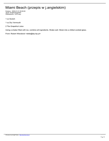 Miami Beach (przepis w j.angielskim) Dodano: 2000-01-01 00:00:00 Język: English/Angielski Odwiedzono: 1076 razy. 1 oz Scotch 1 oz Dry Vermouth 2 Tbs Grapefruit Juice Using a shaker filled with ice, combine all ingredients. Shake well. Strain into a chilled cocktail glass. From: Robert Wierzbicki <[email protected]> Wirtualna Kuchni@ Polska - http://kuchnia.now.pl przepis nr 3505, plik wygenerowano 2017.03.08 18:58 1z1