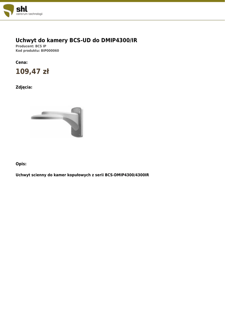 Uchwyt do kamery BCS-UD do DMIP4300/IR Producent: BCS IP Kod produktu: BIP000060 Cena: 109,47 zł Zdjęcia: Opis: Uchwyt scienny do kamer kopułowych z serii BCS-DMIP4300/4300IR