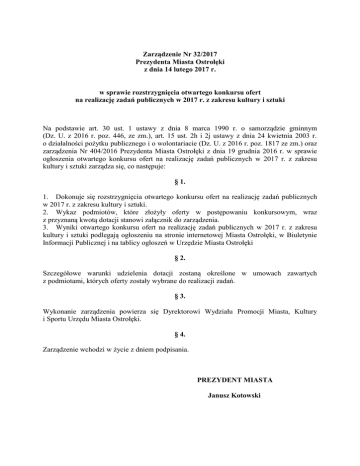 Zarządzenie nr 32/2017 - Urząd Miasta Ostrołęki