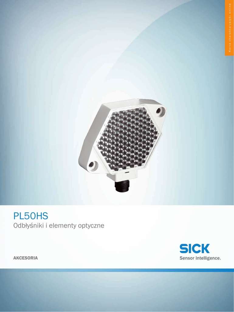 Karta charakterystyki online PL50HS Odbłyśniki i elementy optyczne AKCESORIA PL50HS | Odbłyśniki i elementy optyczne AKCESORIA A B C D E F H I J K L M N O P Q R S T Informacje do zamówienia Typ Nr artykułu PL50HS więcej wersji urządzeń i akcesoriów 1009871 www.sick.com/Odbłyśniki_i_elementy_optyczne Szczegółowe dane techniczne Dane techniczne Grupa akcesoriów Odbłyśniki Rodzina akcesoriów Odbłyśniki specjalne Opis Regulowane ogrzewanie, przykręcany ogrzewanie włączone: T < 15°C, rozwartość klucza 48 mm Sposób zamocowania Przykręcany, mocowanie przy użyciu 2 otworów Temperatura otoczenia podczas pracy –20 °C ... +65 °C Materiał PMMA/ABS Klasyfikacje ECl@ss 5.0 27279203 ECl@ss 5.1.4 27279203 ECl@ss 6.0 27279203 ECl@ss 6.2 27279203 ECl@ss 7.0 27279203 ECl@ss 8.0 27279203 ECl@ss 8.1 27279203 ECl@ss 9.0 27273601 ETIM 5.0 EC002467 ETIM 6.0 EC002467 UNSPSC 16.0901 39111827 2 AKCESORIA | SICK Karta charakterystyki online | 2017-03-07 21:56:11 Informacje mogą ulec zmianie bez powiadomienia PL50HS | Odbłyśniki i elementy optyczne AKCESORIA Rysunek wymiarowy (Wymiary w mm) (0.33) Ø 8.5 (0.18) Ø 4.5 68 (2.68) 1 9 (0. .8 78 ) 78 (3.07) 4.2 (0.17) 1 2 4 3 60 (2.36) M12 x 1 17.5 (0.69) 1 3 24 V UC/1.4 W 0 Zalecane akcesoria więcej wersji urządzeń i akcesoriów www.sick.com/Odbłyśniki_i_elementy_optyczne Krótki opis Typ Nr artykułu Głowica A: Gniazdo, M12, 4 piny, prosty Głowica B: Przewód Przewód: PVC, nieekranowany, 2 m DOL-1204-G02M 6009382 Głowica A: Gniazdo, M12, 4 piny, prosty Głowica B: Przewód Przewód: nadaje się do zastosowania w prowadnikach kabli, PUR, bezhalogenowy, nieekranowany, 2 m DOL-1204-G02MC 6025900 Głowica A: Gniazdo, M12, 4 piny, prosty Głowica B: Przewód Przewód: PVC, nieekranowany, 5 m DOL-1204-G05M 6009866 Głowica A: Gniazdo, M12, 4 piny, prosty Głowica B: Przewód Przewód: nadaje się do zastosowania w prowadnikach kabli, PUR, bezhalogenowy, nieekranowany, 5 m DOL-1204-G05MC 6025901 Głowica A: Gniazdo, M12, 4 piny, prosty Głowica B: Przewód Przewód: PVC, nieekranowany, 10 m DOL-1204-G10M 6010543 Głowica A: Gniazdo, M12, 4 piny, prosty Głowica B: Przewód Przewód: nadaje się do zastosowania w prowadnikach kabli, PUR, bezhalogenowy, nieekranowany, 10 m DOL-1204-G10MC 6025902 Złącza wtykowe i przewody 2017-03-07 21:56:11 | Karta charakterystyki online Informacje mogą ulec zmianie bez powiadomienia AKCESORIA | SICK 3 Karta charakterystyki online SICK W SKRÓCIE Firma SICK należy do czołowych producentów inteligentnych czujników i rozwiązań wykorzystujących czujniki do zastosowań przemysłowych. Wyjątkowa gama produktów i usług stwarza idealną podstawę dla bezpiecznego i wydajnego sterowania procesami, ochrony ludzi przed wypadkami i unikania zanieczyszczenia środowiska. Mamy szerokie doświadczenie w różnych branżach i znamy występujące w nich procesy oraz wymagania. Nasze inteligentne czujniki zapewniają klientom dokładnie to, czego im potrzeba. W centrach aplikacji w Europie, Azji i Ameryce Północnej rozwiązania systemowe są testowane i optymalizowane pod kątem potrzeb konkretnych klientów. Wszystko to sprawia, że jesteśmy niezawodnym dostawcą i partnerem w zakresie rozwoju. Naszą ofertę dopełniają kompleksowe usługi: rozwiązania SICK LifeTime Services wspierają klientów w trakcie całego cyklu użytkowania maszyny i dbają o bezpieczeństwo i produktywność. Właśnie tak rozumiemy hasło „Sensor Intelligence”. BLISKO KLIENTA NA CAŁYM ŚWIECIE: Osoby kontaktowe i pozostałe lokalizacje - www.sick.com SICK AG |Waldkirch|Niemcy |www.sick.com