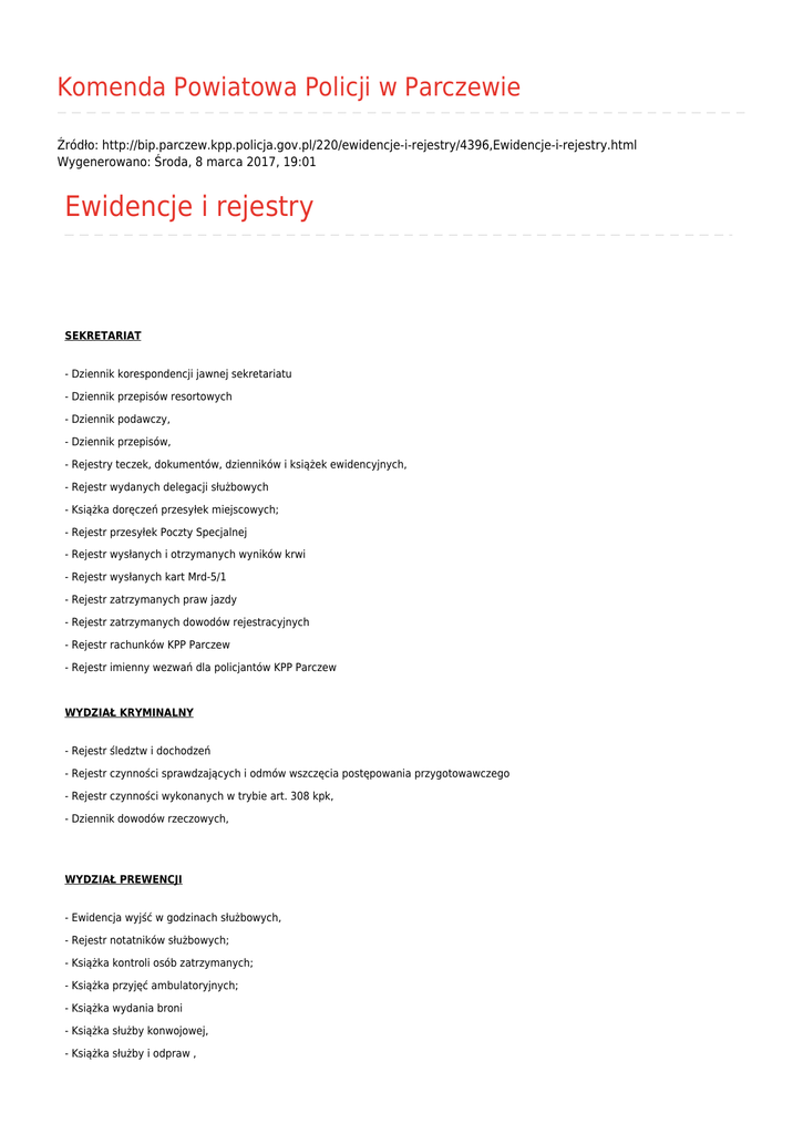Ewidencje i rejestry - Komenda Powiatowa Policji w Parczewie