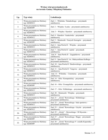 Wykaz wiat przystankowych na terenie Gminy Miejskiej Pabianice
