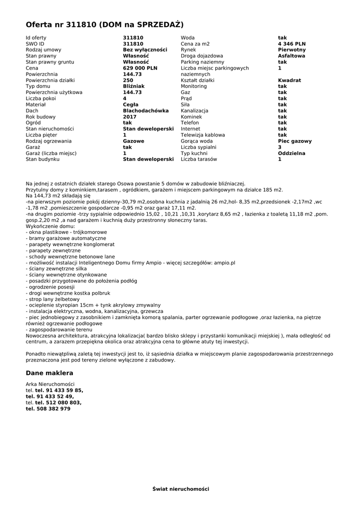 Oferta nr 311810 (DOM na SPRZEDAŻ)