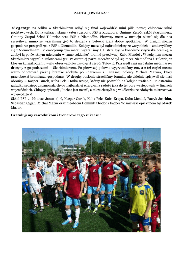 ZŁOTA „DWÓJKA”! 16.05.2013r. na orliku w Skarbimierzu odbył się