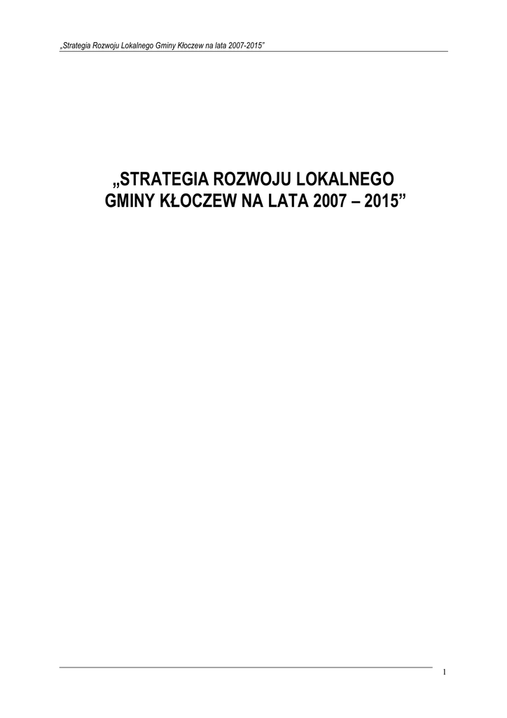 „Strategia Rozwoju Lokalnego Gminy Kłoczew na lata 2007-2015” „STRATEGIA ROZWOJU LOKALNEGO GMINY KŁOCZEW NA LATA 2007 – 2015” 1 „Strategia Rozwoju Lokalnego Gminy Kłoczew na lata 2007-2015” SPIS TREŚCI I. OBSZAR I CZAS REALIZACJI STRATEGII ROZWOJU LOKALNEGO II. DIAGNOZA SYTUACJI SPOŁECZNO-GOSPODARCZEJ 1. INFORMACJE OGÓLNE O GMINIE 2. UWARUNKOWANIA ŚRODOWISKA PRZYRODNICZEGO 2.1. Położenie geograficzne 2.2. Charakterystyka sieci osadniczej 2.3. Środowisko przyrodnicze i zasoby naturalne gminy 2.4. Dziedzictwo i wartości kulturowe gminy 3. SFERA DEMOGRAFICZNO-SPOŁECZNA 3.1. Demografia gminy 3.2. Rynek pracy i struktura bezrobocia 3.3. Sytuacja mieszkaniowa 4. INFRASTRUKTURA GOSPODARCZA 4.1 Struktura podmiotów gospodarczych 4.2 Rolnictwo 5. IFRASTRUKTURA SPOŁECZNA 6. 5.1 Infrastruktura edukacyjna 5.2 Ochrona zdrowia i opieka społeczna 5.3 Infrastruktura sportowa i kultury INFRASTRUKTURA TECHNICZNA 6.1 Komunikacja 6.2 Infrastruktura sanitarna 6.3 Gospodarka odpadami komunalnymi 6.4 Gazyfikacja oraz zaopatrzenie w ciepło 6.5 Elektroenergetyka 7. POLITYKA PRZESTRZENNA GMINY 8. ANALIZA UWARUNKOWAŃ ROZWOJOWYCH 9. WNIOSKI – REKOMENDACJE III. STRATEGIA ROZWOJU LOKALNEGO 1. Wizja i misja rozwoju gminy Kłoczew 2. Strategiczne i operacyjne cele rozwoju 3. Zgodność strategii z innymi dokumentami 4. System wdrażania i monitorowania strategii 5. Oczekiwane wskaźniki osiągnięć Strategii Rozwoju Lokalnego Gminy 6. Opis konsultacji społecznych IV. WIELOLETNI PLAN INWESTYCYJNY GMINY KŁOCZEW NA LATA 2008-2011 1. Wprowadzenie 2. Analiza budżetu gminy 3. Lista zadań inwestycyjnych gminy Kłoczew na lata 2008-2011 4. Szczegółowy opis zadań 2 „Strategia Rozwoju Lokalnego Gminy Kłoczew na lata 2007-2015” I. OBSZAR I CZAS REALIZACJI STRATEGII ROZWOJU LOKALNEGO „Strategia Rozwoju Lokalnego Gminy Kłoczew” na lata 2007-2015” jest podstawowym narzędziem prowadzonej przez samorząd terytorialny polityki lokalnej. Jest dokumentem strategicznym o charakterze długofalowym, wyznaczającym cele i kierunki rozwoju gminy do 2015 roku. Wójt i Rada Gminy w celu unormowania procesu wieloletniego planowania rozwoju gminy przystąpili do opracowania Strategii Rozwoju Lokalnego. Celem opracowania dokumentu jest określenie potrzeb inwestycyjnych oraz długofalowej koncepcji rozwoju gminy. Istotną przesłanką opracowania Strategii Rozwoju Lokalnego jest konieczność zaprogramowania skoordynowanych działań, które w określonym czasie i sytuacji społeczno–gospodarczej, pozwolą na osiągnięcie założonych rezultatów. „Strategia Rozwoju Lokalnego Gminy Kłoczew” to długookresowy program działania określający strategiczne cele rozwoju oraz wskazujący sposoby ich osiągnięcia z uwzględnieniem zewnętrznych i wewnętrznych uwarunkowań rozwoju. Dokument powstał w wyniku prac Zespołu ds. Rozwoju Lokalnego złożonego z przedstawicieli pracowników Urzędu Gminy, Rady Gminy, liderów społeczności lokalnej i doradców zewnętrznych, poddany szerokiej partycypacji społecznej stanowi istotny wkład w budowanie społeczeństwa obywatelskiego. Strategia Rozwoju Lokalnego jest dokumentem otwartym, formułuje cele strategiczne gminy i sposoby ich realizacji na lata 2007 - 2015. Otwarty charakter dokumentu umożliwia wprowadzenie korekt przyjętej Strategii Rozwoju Lokalnego wynikających z procesu transformacji społecznogospodarczych oraz zmian hierarchii priorytetów przyjętych przez Władze Gminy. Podstawą w pracach nad dokumentem były przede wszystkim: • • • • • • • • Strategia Rozwoju Województwa Lubelskiego na lata 2006-2020, Studium Uwarunkowań i Zagospodarowania Przestrzennego Gminy Kłoczew, Plan Miejscowy Zagospodarowania Przestrzennego Gminy Kłoczew, Plan Rozwoju Lokalnego Gminy Kłoczew, Regionalny Program Operacyjny Województwa Lubelskiego na lata 2007-2013, Program Rozwoju Obszarów Wiejskich na lata 2007-2013, Rocznik Statystyczny Województwa Lubelskiego, Bank Danych Regionalnych, Główny Urząd Statystyczny. 3 „Strategia Rozwoju Lokalnego Gminy Kłoczew na lata 2007-2015” Prace nad „Strategią Rozwoju Lokalnego Gminy Kłoczew” wykonano w trzech etapach: ⇒ opracowanie części diagnostycznej Rzetelna diagnoza istniejącego stanu gminy oraz analiza sytuacji społeczno-gospodarczej gminy warunkująca poprawność określenia celów strategicznych w sferze społecznej i gospodarczej oraz wyodrębnienia pakietu zadań niezbędnych do realizacji. Diagnoza opracowana na podstawie danych statystycznych i badań własnych, w oparciu o materiał źródłowy pochodzący z Urzędu Gminy oraz dane GUS. ⇒ przeprowadzenie warsztatów strategicznych Przeprowadzenie warsztatów nad budowaniem Strategii Rozwoju Lokalnego pod kierunkiem ekspertów zewnętrznych z udziałem wytypowanych przedstawicieli gminnej społeczności. W zajęciach wykorzystano bardzo efektywną metodę planowania strategicznego ukierunkowanego na cel (Ziel Orientierte Projekt - Planung; ZOPP) wypracowaną w Niemieckiej Agencji Współpracy z Zagranicą. W swoim zakresie stanowi ona jeden ze standardów stosowanych w krajach Unii Europejskiej. ⇒ opracowanie części strategicznej i inwestycyjnej Opracowanie Strategii Rozwoju Lokalnego Gminy określającego pożądane kierunki rozwoju gminy przez wyznaczenie konkretnych zadań i sposobów ich realizacji, a także zidentyfikowanie potrzeb i oczekiwań społeczności lokalnych ze wszystkich miejscowości gminnych oraz ujęcie ich w strategii. Niniejsza część „Strategii Rozwoju Lokalnego Gminy Kłoczew” prezentuje cele strategiczne i operacyjne zaplanowane w okresie 2007-2015, oczekiwane wskaźniki osiągnięć strategii, system wdrażania, monitoring i proces konsultacji społecznych. Zadania inwestycyjne zaplanowane na okres 2008-2011 ujęte w strategii zostały wypracowane podczas zajęć warsztatowych z udziałem przedstawicieli społeczności lokalnej, które odbyły się na terenie gminy Kło
