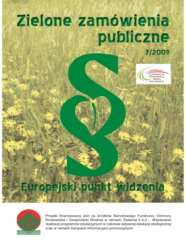 Projekt finansowany jest ze środków Narodowego Funduszu Ochrony Środowiska i Gospodarki Wodnej w ramach Zadania 5.4.2 – Wspieranie realizacji programów edukacyjnych w zakresie aktywnej edukacji ekologicznej oraz w ramach kampanii informacyjno-promocyjnych. Zielone Zamówienia Publiczne 1 Szanowni Państwo Przekazujemy siódmy, majowy numer biuletynu „Zielone Zamówienia Publiczne”. Dookoła wszystko się pięknie zazielenia i kwitnie. Mamy nadzieję, że zarówno nasze szkolenia e-learningowe, jak i biuletyn przyczyniają się do zazieleniania zamówień publicznych, i ze w tej dziedzinie nastanie kiedyś pełna wiosna! Coraz częściej mówi się już nie tylko o zielonych zamówieniach, ale o zamówieniach zrównoważonych. Chodzi oczywiście o ekologiczne i społeczne zrównoważenie zamówień, zgodnie z koncepcją trwałego i zrównoważonego rozwoju. Od opublikowania przez Urząd Zamówień Publicznych i Ministerstwo Gospodarki dokumentu „Nowe podejście do zamówień publicznych”, w którym promuje się proekologiczne i prospołeczne zamówienia, mija już rok. W biuletynie pochylamy się nad tym tematem, a bardziej zainteresowanych odsyłamy do tego interesującego dokumentu. Niebawem upłynie rok od momentu opublikowania przez Komisję Europejską ważnych dla zielonych zamówień publicznych Komunikatów. Na łamach biuletynu przytaczamy komunikaty, dotyczące zielonych zamówień i ekologicznego równoważnia wzorców produkcji i konsumpcji – przedstawiając ich najważniejsze treści. Kontynuujemy temat zarządzania środowiskowego, tym razem prezentując system EMAS. Zwracamy uwagę, że zielone zamówienia nie są tematem autonomicznym i „rzeczą samą w sobie”, lecz są szeroko powiązane i wynikają z celów koncepcji zrównoważonego rozwoju, którą Unia Europejska traktuje jako naczelną zasadę rozwojową, a nasz kraj przyjął jako zasadę konstytucyjną. W biuletynie pokazujemy więc rolę zielonych zamówień w kontekście aktualnej polityki ekologicznej państwa, jak również strategii zrównoważonego rozwoju UE i jej ambitnych celów. W połowie maja kończymy drugą i zaczynamy trzecią, ostatnią już edycję szkoleń e-learningowych. Witamy wszystkich nowych uczestników i zachęcamy ich do studiowania ciekawych i ekoinnowacyjnych zagadnień, związanych z zielonymi zamówieniami. W czerwcu zakończymy nasze szkolenia i – mamy taką nadzieję – wręczymy certyfikaty wszystkim uczestnikom szkoleń! Z poważaniem Mikołaj Niedek Koordynator Projektu W naszym biuletynie znajdą Państwo: • Europejski punkt widzenia • Wspólne kryteria • W zgodzie ze środowiskiem • Ambitne cele Komisji • Nowe podejście • Próba bilansu • Zamawiamy produkty w szkle Biuletyn przygotowują: Włodzimierz Kaleta, Mikołaj Niedek Kontakt: Fundacja Promocji Gmin Polskich ul. Jaworzyńska 7/3, 00-634 Warszawa Tel./fax 0-22 827 19 99 e-mail [email protected] www.ingmina.pl Informacje o projekcie: www.publicus.pl Zgłoszenia na szkolenia e-learning www.samorzad.pap.pl Projekt finansowany jest ze środków Narodowego Funduszu Ochrony Środowiska i Gospodarki Wodnej w ramach Zadania 5.4.2 – Wspieranie realizacji programów edukacyjnych w zakresie aktywnej edukacji ekologicznej oraz w ramach kampanii informacyjno-promocyjnych. 2 Zielone Zamówienia Publiczne Zamówienia publiczne na rzecz poprawy stanu środowiska „Według Komisji Europejskiej zielone zamówienia to proces, w ramach którego instytucje publiczne starają się uzyskać towary, usługi i roboty budowlane, których oddziaływanie na środowisko w trakcie ich cyklu życia jest ograniczone w porównaniu do towarów, usług i robót budowlanych o identycznym przeznaczeniu, jakie zostałyby zamówione w innym przypadku”. W połowie 2008 r. Komisja Europejska wystosowała dwa ważne Komunikaty. Pierwszy, z 16 lipca 2008 pt. „Zamówienia publiczne na rzecz poprawy stanu środowiska” [KOM(2008)400] bezpośrednio odnosi się do kwestii proekologicznych przetargów i zostanie niżej omówiony. Drugi, z dnia 24 lipca 2008 r., dotyczy planu działania na rzecz zrównoważonej konsumpcji i produkcji oraz zrównoważonej polityki przemysłowej [COM(2008)397] i do kwestii zielonych zamówień odnosi się pośrednio. Ogólnym celem pierwszego komunikatu jest dostarczenie wytycznych, dotyczących sposobu ograniczania oddziaływania konsumpcji sektora publicznego na środowisko naturalne oraz wykorzystania GPP do pobudzania innowacji w zakresie technologii, produktów i usług środowiskowych. Do szczegółowych celów komunikatu, odpowiadających poszczególnym przeszkodom w szerokim wdrażaniu zielonych zamówień, należy: • • • • proces ustalania wspólnych kryteriów dotyczących GPP; informacje nt. obliczania kosztu cyklu życia produktów; wytyczne prawne i operacyjne; wsparcie polityczne poprzez ustalenie celu powiązanego ze wskaźnikami i systemu monitorowania. W komunikacie Komisja definiuje zielone zamówienia jako proces, w ramach którego instytucje publiczne starają się uzyskać towary, usługi i roboty budowlane, których oddziaływanie na środowisko w trakcie ich cyklu życia jest ograniczone w porównaniu do towarów, usług i robót budowlanych o identycznym przeznaczeniu, jakie zostałyby zamówione w innym przypadku. Komunikat odnosi się do wszelkich procedur udzielania zamówień publicznych, zarówno powyżej, jak i poniżej progów określonych w europejskich dyrektywach w sprawie zamówień publicznych. W każdym przypadku specyfikacje środowiskowe, kryteria kwalifikacji i udzielania zamówień oraz klauzule umowne muszą być formułowane w sposób w pełni zgodny z przepisami UE w zakresie zamówień publicznych oraz innymi stosownymi przepisami unijnymi i krajowymi. Każdego roku instytucje publiczne w Europie wydają równowartość 16% produktu krajowego brutto UE na zakup towarów, np. sprzętu biurowego, elementów budowlanych i pojazdów transportowy
