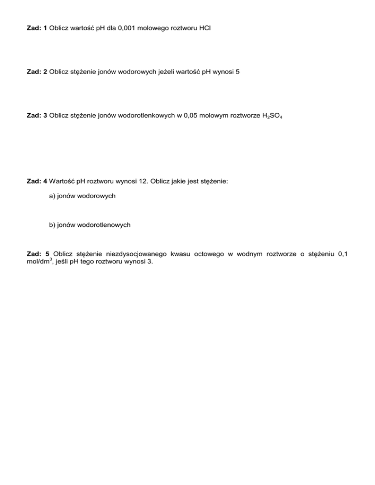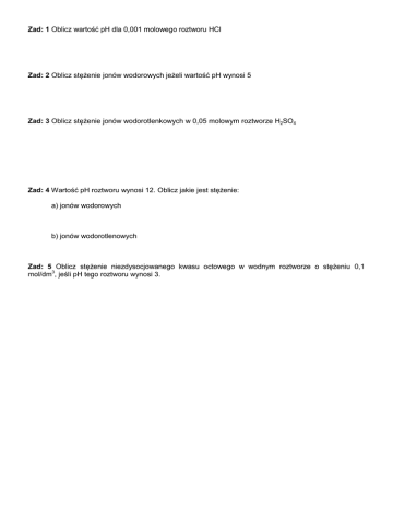 Zad: 1 Oblicz wartość pH dla 0001 molowego