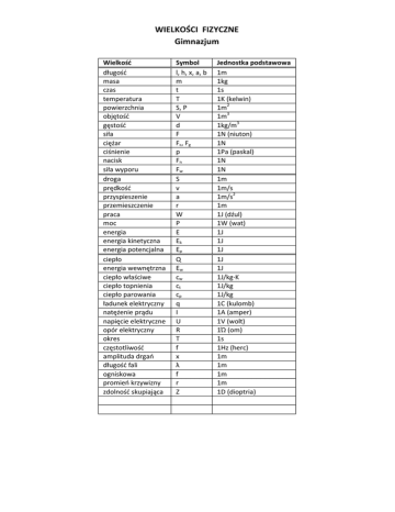 WIELKOŚCI FIZYCZNE Gimnazjum