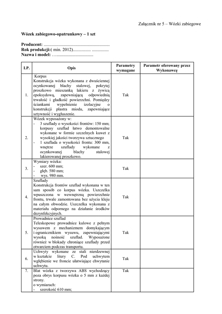 Załącznik nr 5 – Wózki zabiegowe Wózek zabiegowo