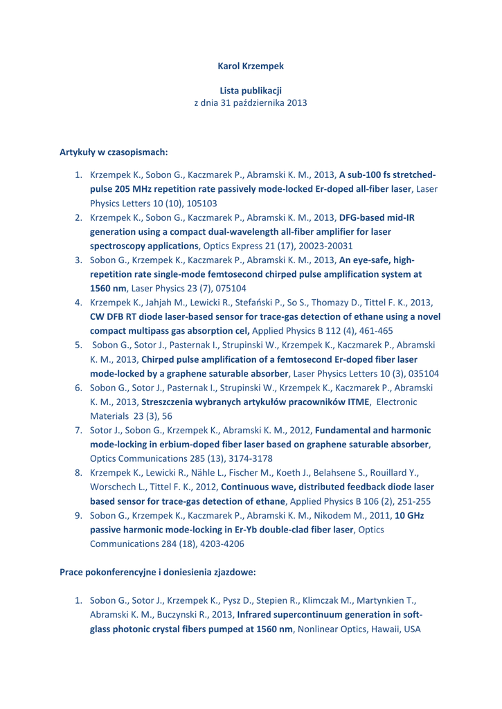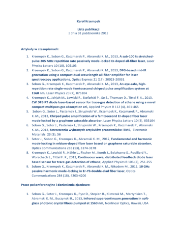 Karol Krzempek Lista publikacji z dnia 31 października 2013