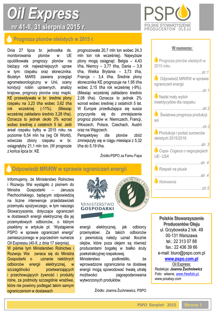 Oil Express nr 41(II), 31 sierpnia 2015
