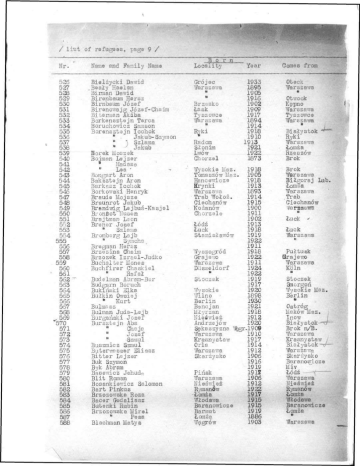 '• HMH / l r s t of refugaas, page 9 / 1 Nr. 526 527 528 529 530 531 532 533 534 535 536 537 538 539 540 541 542 543 544 545 546 547 548 549 550 551 552 553 554 555 556 557 558 559 560 561 562 563 564 565 566 567 568 , 5 6 9 570 571 572 573 574 575 576 577 578 579 580 581 582 583 584 585 586 587 588 Name and Family Nam* Bielzycki Dawid .Beaiy Haelan Birman Dawid Birenbaum Hersz Birnbaum Jozef Birancwajg Joz^f-Chaim Biterman Akiba Borkensztejn Tarca Boruchowicz Samson Borensztejn Icchok it J a k u b - S z y r n on ii "\ Szlama it Jakub Borek Moszak Boiman Lsjzer 8 Hadasa " Laa ' Bongart Aron Baksztajn Aron Barkasz Icchok Borkowski Henryk Braude Mojsza Braunrot Jakub Brand wig Lejbus-Kasjel Brontot lluson Brajtman Loon Brener Josef • Szlama Bromberg Lajb " Symcha.. Bregman Hersz Brzezina Ghaim Brzozek Izraol-Judko Buchalter Mones Buchfirsr Ohaskiel M Rafai Budelman Abram-Ber Budgarn Boruch Bukiriski 31ka Bulkin Owsiaj • Kurt Bulma sz Bulman Juda-Leib Burgariski Josef Bursztejn Aba " Chaja • Josef " Qzrnul Buszmicz Szmul Buterwasser Eliasz B i t t e r Lcjzer Buk Szymon Byk Abram Basewicz Jchudn Blit Roman Bosankiewicz Salomon Bart Pinkus Brzozowska Roza Bacer Gedaliasz Butenki Rubin Brzozowska Mirel * Pa sa Blachman Matys • B o r n Locality Giro j o e Warszawa I M Brz:>3ko Lask Tyszovjce Warszawa n Bvki • Radom Sionim Lwow Chorzel Year Gomes from Otack Warszawa H 1933 1895 1905 1916 1902 1909 1917 1894 1914 1918 1910 1913 1921 1922 1873 Otwock Kepno Warszawa Tyszowc* Warszawa Biaiystok Ryki Warszawa Lomzar Rzeszow B r ok **""" 4 Wysokie Maz. Tomaszow Maz. Hancewicza Hrynki Wl&rszawa Trab Woioz. Ciechanow Kozanow Chorzelo Lodz Luck Stanisiawow Wyszogrod Grajewo Warszawa Diisseldorf M Stoczek Wysokie Wiino • Berlin Bencjan Miyrzan Nieswiez Andrzsjow Sekaszyzna Warszawa Krasnystaw Orla Warszawa Skarzysko P i risk Warszawa Nieswiez Rymanfiw Lomza Wlodawa Baranowiczi Barmut Lomza W^grow 1918 1905 1918 1913 1893 1914 1915 1900 1911 1902 1913 1918 1919 1922 1911 1918 1922 1911 1924 1922 1919 1917 1920 1898 1930 1921 1918 1912 1920 r.1909 1910 1917 1914 1912 1906 1916 1919 1912 1906 1912 1922 1917 1915 1915 1919 1886 1903 Brok Warszawa Biigoraj Lub. Lorn z a Warszawa .Trab Giechanow Yarszawa n Luck ' Luck Warszawa n Puitusk Brajewo Warszawa Kbln i Stoczek Salomon Wysokie Berlin ft • Maz. Ostrog Makow Maz. Inow Biaiystok-^r" Brok n/B. Warszawa Krasnystaw /' Biolystok^v— Warszawa Skarzysko Baranowiczi Miv T o' d1z' r L Warszawa Nieswiez Rymanow Lomza Wlodawa Baranowicze Lomza i Warszawa
