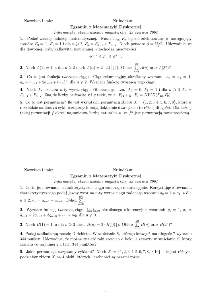 Informatyka, studia dzienne magisterskie, 29 czerwca 2004