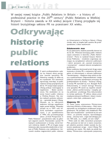pr œwiat pr œwiat @ \`XSNS WX`NS T\RŖLN h9^KURL ;NUJ]RXW\ RW +[R]JRW o J QR\]X[b XO Y[XON\\RXWJU Y[JL]RLN RW ]QN ]Q LNW]^[bm 9^KURL ;NUJ]RXW\ ` @RNUTRNS +[b]JWRR o QR\]X[RJ cJ`XM^ ` AA `RNT^ 3JLZ^RN 5n.]JWP Y[cbPUMJ \R¢ QR\]X[RR K[b]bS\TRNPX \NT]X[J 9; WJ Y[cN\][cNWR AA `RNT^ Odkrywając historię public relations E Z[TYTT []ZQP^UZYLWT^_Çb bdčL YTL ^Tí YTPUL^Yd ZM]Le [ZNeÙ_ VÇb eLbZO` ^[PNULWT^_d ;= 9TPV_Ç]ed `bLŇLUÙ ŇP eMWTŇL ^Tí OZ _]edOeTP^_VT 4YYT ^_LYZbNeZ eL[]ePNeLUÙ_bTP]OeÙNŇP[`MWTN ]PWL_TZY^T^_YTPUP[]edYLUXYTPUZO !WL_B^bZUPUV^TÙŇNP5LN\`TP 7v0_LYR []ÇM`UP ]Ze^_]edRYÙÛ _P bÙ_[WTbZĦNT w -dčLX eLNTPVL bTZYL 9TP bTPOeTLčLX YTN YL _PXL_ ST^_Z]TT [`MWTN ]PWL_TZY^ b BTPWVTPU -]d_LYTT 9TP XTL čLX ŇLOYdNS [`YV_Çb ZOYTP^TP YTL w Z[ZbTLOL 5LN\`TP 7v0_LYR :VLeLčZ ^Tí _Z ZWM]edXTX eLOLYTPX V_Ç]PRZ bd[PčYTPYTP eLUíčZ [ZYLO OPVLOí B^ed^_VZ eLNeíčZ ^Tí b $$ ]ZV` VTW VZXL bdbTLOLXT ]Ze[ZeYLb NedXT L [Z Z[`MWTVZbLYT` b $$! ]ZV` []ZbZVLNdUYPRZ _PV^_` k.]T_TNLW ;P]^[PN_TaP^ TY ;`MWTN =PWL_TZY^u [Z^e`VTbLYTL ^_Lčd ^Tí RčÇb YdX eLUíNTPX L`_Z]VT =ZeXLbTLčL e [ZYLO " bLŇYdXT Z^ZMT^_ZĦNTLXT b M]LYŇd bĦ]ÇO V_Ç ]dNS YTPV_Ç]ed OeTLčLWT b ;= ZO O]`RTPU bZUYd ĦbTL_ZbPU5LVZYL`NedNTPWVLLVLOPXTNVLb4Y^_T _`_P ZQ ;`MWTN =PWL_TZY^ Z]Le bdVčLOZbNL T VTP ]ZbYTV ^_`OTÇb XLRT^_P]^VTNS [`MWTN ]PWL_TZY^ "! YL @YTbP]^d_PNTP b >_T]WTYR b >eVZNUT 7v0_LYR NSNTLčL ŇPMd UPU V^TÙŇVL MdčL Ned_PWYL OWL []ZQP ^UZYLWT^_ÇbL_LVŇP YL`VZbNÇb Edukowanie mas 6`UPUeL^VZNePYT`MLOLYTL[ZebZWTčdOZ_]ePÛLŇ OZWL_BÇbNeL^VZYNP[NUí[`MWTN]PWL_TZY^ Neí^_Z ZXLbTLYZ b OeTPYYTV` k;`MWTN ,OXTYT ^_]L_TZYu ;T^XZ _Z bdOLbLč 4Y^_d_`_ ,OXTYT ^_]LNUT ;`MWTNeYPU w YTPeLWPŇYL Z]RLYTeLNUL eLU X`UÙNL ^Tí eL]eÙOeLYTPX ^PV_Z]PX [`MWTNeYdX T _LVTXT ^[]LbLXT ULV kbdbTLO ePbYí_]eYd TbPbYí_]eYduwebLYdXTZMPNYTPeL]eÙOeLYTPX []ZMWPXPX >PV_Z][`MWTNeYdOZXTYZbLč[]ePOO]`RÙbZUYÙ ĦbTL_ZbÙ b M]LYŇd ;= L YL^_LbTZYd Mdč ^eNeP RÇWYTP YL TYQZ]XZbLYTP Z eO]ZbT` [`MWTNeYdX TOPXZV]L_deLNUTw6čLOeTZYZO`ŇdYLNT^VYL]PWL NUPb^[ZčPNePď^_bTP:O[ZbTPOeTLWYZĦÛT^č`ŇML [`MWTNeYL^_LYZbTčdYLUbLŇYTPU^eP[]TZ]d_P_dOWL []ZQP^UZYLWT^_Çb _PU M]LYŇd w _č`XLNed 7v0_LYR E M]LYŇd ;= bdbZOeTč ^Tí XTY -]d_dU^VT =`NS /ZV`XPY_LWYd b ]LXLNS V_Ç]PRZ QTWXZbNd Z]Le ^[PNULWTĦNT ;= ^_L]LWT ^Tí b^[ÇWYTP `V^e_Lč _ZbLÛ kOZM]eP [ZTYQZ]XZbLYÙ T ]Ze^ÙOYÙ Z[T YTí [`MWTNeYÙu []ZO`V`UÙN QTWXd OZV`XPY_LWYP YL _PXL_d ^[ZčPNeYP B ZMWTNe` ZMLbd []ePO XTíOedYL]ZOZbdXTVZYQWTV_LXTTTOPLXT]PbZW` NdUYdXTNPWPX MdčZkPO`VZbLYTP XL^u Wojenny PR B NeL^TP bZUYd `^_LYZbTZYZ 8TYT^_P]^_bZ 4YQZ]XLNUT8TYT^_]dZQ4YQZ]XL_TZYw8Z4V_Ç]P eLUXZbLčZ^Tí^eNePRÇWYdXT[]ZMWPXLXT[]Z[L RLYOZbdXT 9L [ZNeÙ_V` ^bPU OeTLčLWYZĦNT 8Z4 MdčZZ^_]ZV]d_dVZbLYPw[Zb_L]eLč^Tí_PY^LX ]PQ]PY% k_Z [ZbZWYL XL^edYL b[]ZbLOeLUÙNL eLXí_^e_`NeYd_bÇ]lZ]RLYeL_]`OYTLUÙNd[]L bTPZ^ÇMlNZ`OTLMčLZYT_LX]ZMTÙ*u w BTPWP Z^ÇM YTP `QLčZ ]ePNeYTVZX []L^ZbdX 8Z4 [ZYTPbLŇ YTP MdWT ZYT b ^_LYTP e]Ze`XTPÛ ULV ^`M_PWYTP [ZbTYTPY OeTLčLÛ bdbTLO Md ^V` _PNeYTP eLL_LVZbLÛ b]ZRL w XÇbT 7v0_LYR 8ZW eLXVYTí_Z [Z bZUYTP 9TP ZMdčZ ^Tí UPOYLV MPe OPML_d 8TYT^_P]^_bZ bdVZYdbLčZ [ZŇd_PNeYÙ pr œwiat []LNí LWP bTPW` W`OeTZX YTP [ZOZMLčL ^Tí TOPL [Z^TLOLYTL 8TYT^_P]^_bL 4YQZ]XLNUT b NeL^LNS [ZVZU`EOLbLčZ^Tí_ZYTPNZkYTPLYRTPW^VTPuTYTP [L^ZbLčZOZOPXZV]L_dNeYdNSTOPLčÇb;ÇŅYTPU 8Z4[]ePV^e_LčNZYZb.PY_]LWYP-T`]Z4YQZ]XL NdUYPbV_Ç]dXeL_]`OYTZYZL[ZWT_dNeYdNSbd^[P NULWTeZbLYdNS`]eíOYTVÇbO^TYQZ]XLNUT]PV]` _ZbLYdNS []ePe =eÙOZbP -T`]Z 4YQZ]XLNdUYP 6]d_dVLXT YZbdNS NečZYVÇb eLbZO` MdWT XTY eLčZŇdNTPWP 4Y^_d_`_` ;`MWTN =PWL_TZY^ 4;= [Zb^_Lč b $# ]ZV` [Z [TíNT` WL_LNS YLWPŇLčZ OZ YTPRZ"!Z^ÇMB$$]ZV`WTNeML_LbdYZ^TčL$LZMPNYTPNečZY VÇb UP^_ # /LbYTPU VZY^`W_LYNT ;= YTP XZRWT OZčÙNedÛ OZ 4;= w [Z NeíĦNT OWL_PRZ ŇP MdčZ TNS _LV YTPbTPW` 6ZWPUYdX [ZbZOPX MdčZ _LVŇP YTPOZNPYTLYTPTNS]ZWTB$ ]ZV`=PYP0WaTYe.]LbQZ]O^;`MWTN=PWL _TZY^ ^VL]Ňdč ^Tí ŇP ;=ZbNd b BTPWVTPU -]d_LYTT kYTP Z^TÙRYíWT UP^eNeP [PčYPRZ ^_L_`^` OZ]LONÇb b eL]eÙOeLYT` V_Ç]dX NTP^edWT ^Tí b >_LYLNS EUPOYZNeZYdNSROeTP[]edNedYTWT^TíOZeL^VLV`UÙNPRZ]ZebZU`TPQPV_db YZĦNT[]ePXd^č`u:WM]edXT]ZebÇULRPYNUT;=[]ed[LOLčYLWL_L!ROd XPYPOŇP]ZbTPeOLWT^ZMTP^[]LbíŇPUP^__Z_LYT^[Z^ÇMb[Z]ÇbYLYT` OZ ]PVWLXdYLeOZMdNTP]ZeRčZ^`b XPOTLNS PR a reklama ,RPYNUP;=Mdčd]eLOVZĦNTÙLŇOZWL_ BNeP ĦYTPUUPOYLV[TP]b^T[]dbL_YTeLbZOZbTVZY^`W _LYNT ;= ZOOeTPWTWT ^Tí ZO []ePXd^č` ]PVWLXZ bPRZ ,RPYNUP ]PVWLXZbP Neí^_Z eL_]`OYTLčd _LVŇPVZY^`W_LY_L;=NZMdčZ`eYLbLYPeL_Lď ^eÙbP]^Uí]PVWLXdBĦ]ÇOYTNSMdčZbTPW`XíŇ NedeYeM]LYŇd]PVWLXZbPUVZMTP_d[ZeZ^_LbLčd ]eLOVZĦNTÙb^PV_Z]eP;=OLbYdNSOeTPYYTVL]ed W`MZ^ÇMV_Ç]P[Z[]ePOYTZ[]LNZbLčdbbZU^V` L V_Ç]P _P]Le [Z^_LYZbTčd []ePYTPĦÛ ^Tí OZ ;= 7L_L [ZbZUPYYP ^_bL]eLčd bTPWP XZŇWTbZĦNT []LNZbYTVZX ;= w b ^PV_Z]eP [`MWTNeYdX ULV ]ÇbYTPŇ []dbL_YdX w =ZebTULč ^Tí VZY^`XP ]deX 4^_YTLčL [Z_]ePML TYQZ]XZbLYTL ZMdbL_PWT ZTNS[]LbLNSbYZbdX[Lď^_bTPZ[TPV`ďNedX T`ed^VTbLYTLZOYTNSTYQZ]XLNUTeb]Z_YdNSw_č` XLNed 5LN\`TP 7v0_LYR ,`_Z]VL ZOV]dčL b ULVT ^[Z^ÇM MLOLYTP ]dYV` ^_LčZ ^Tí YTPeMíOYdX YL]eíOeTPX ^č`ŇÙNdX OZ e]Ze`XTPYTL _PRZ kNZ XdĦWÙXL^dNZW`MTÙLeLNedXYTP[]eP[LOLUÙu w 9TP^_P_d ^PV_Z] ;= `OZ^_í[YTč _Z YL]eíOeTP MLOLNeZX ]dYV` T ^[PNULWT^_ZX ZO XL]VP_TYR` eLXTL^_ []edbčL^eNedÛ UP ^ZMTP .TPVLbP ULV bdRWÙOLčMd OeT^TLU ^PV_Z] ;= ROdMd bÇbNeL^ eLNSZbLč_ZZOV]dNTP bdčÙNeYTP OWL ^TPMTP* Dziennikarze kontra PR-owcy 5`ŇbWL_LNS T!XZŇYLMdčZeL`bLŇdÛbd]LŅYdVZYQWTV_XTíOedOeTPY YTVL]eLXTL^[PNULWT^_LXT;=;TP]b^TV]d_dVZbLWTM]LYŇí;=eLM]LVVZX [P_PYNUT P_dVT T YLOXTP]YP [ZWPRLYTP YL bd^_LbYPU RZĦNTYYZĦNT 4^_YTLčZ YLbP_ >_ZbL]ed^ePYTP EYTPNSíNLYTL OZ ;`MWTN =PWL_TZY^ >_]L_PRTL kVč` ^ZbYTV ^_LUP ^Tí RLUZbdXu MdčL Neí^_dX ^NPYL]T`^ePX VL]TP]d [ZOZMYTP ULVOeT^TLULb]LeeYTÙYLOP^ečLV]d_dVLXÇbTÙNLŇPkVLŇOdXZŇP[]LNZ bLÛ b ;=u 5LN\`TP 7v0_LYR []edeYLUP ŇP [d_LYTP Ned ;= UP^_ eLbZOPX [ZeZ^_LUP YTP]Ze^_]edRYTí_P ebčL^eNeL bĦ]ÇO ^ZNUZWZRÇb w @ŇdbLXd NT