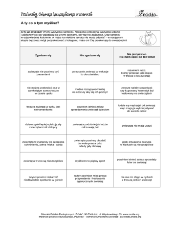(EG4D3FK'5:DA@3:G?3@;F3D@3LI;7DL3F $W\FRRW\PP\OLV]" $W\MDNP\OLV]":\WQLMZV]\VWNLHNDUWRQLNL1DVW SQLHSU]HF]\WDMZV]\VWNLH]GDQLD L]DVWDQyZVL F]\]JDG]DV]VL ]W\PLRSLQLDPLF]\WH*QLH]JDG]DV]8áy*NDUWRQLNL ZRGSRZLHGQLHMNROXPQLH$PR*HQDQLHNWyUHWHPDW\QLHPDV]]GDQLD"ZQDVW SQ\P HWDSLHE G]LHV]PyJáSRG\VNXWRZDü]NROHJDPLPR*HRQL&L SU]HNRQDMGRVZRMHMRSLQLL =JDG]DPVL 1LH]JDG]DPVL Nie jest pewien Nie mam opinii na ten temat ]ZLHU] WDQLHSRZLQQ\E\ü prezentami SRU]XFDQLH]ZLHU]WZZDNDFMH WRRNUXFLHVWZR rozumiem ludzi, NWyU]\SU]HVWDOLMHüPL VR ZWURVFHRORV]ZLHU]W QLHPR*QD]RVWDZLDüSVDZ ]DPNQL W\PVDPRFKRG]LH ZF]DVLHXSDáX PR*QDUR]V\S\ZDüWUXWN QDV]F]XU\DE\VL LFKSR]E\ü ]DZV]HQDOH*\VSUDZG]Dü F]\NXSRZDQ\NRVPHW\NE\á WHVWRZDQ\QD]ZLHU] WDFK WUHVXUD]ZLHU]WZF\UNXMHVW niehumanitarna SRZLQLHQLVWQLHü]DND] VSU]HGDZDQLD]ZLHU]WG]LHFLRP OXG]LHVPGU]HMVLRG]ZLHU]W ZL FPRJMHZ\NRU]\VW\ZDü do swoich celów G]LHZF]\QNLOHSLHMRSLHNXMVL ]ZLHU] WDPLQL*FKáRSF\ ]ZLHU] WDSRGREQLHMDNOXG]LH RGF]XZDMEyO ]ZLHU] WDQLHPDMXF]Xü ]ZLHU] WRPZ\VWDUF]\GRV]F] FLD VFKURQLHQLHSHáQDPLVNDLZRGD ]ZLHU] WDSRZLQQ\FKRG]Lü do weterynarza tylko ZWHG\JG\FKRUXM SWDNL]PXV]RQHGR*\FLD ZNODWNDFKVQLHV]F] OLZH ]ZLHU] WDZ]RRVQLHV]F] OLZH P\OLVWZRWRSL NQ\VSRUW SRZLQLHQLVWQLHü]DND]VSU]HGD*\ IXWHU]H]ZLHU]W WXU\FLSRZLQQLGRNDUPLü QLHG(ZLHG]LHVSRWNDQLHZJyUDFK ND*G\SRZLQLHQPLHüSUDZR SU]\ZR*HQLDLKRGRZDQLD HJ]RW\F]Q\FK]ZLHU]W QLHPDQLF]áHJRZF\UNDFK ]WUHVXUG]LNLFK]ZLHU]W 2URGHN']LDáD(NRORJLF]Q\FKÄ'UyGáD´àyG(XO:L FNRZVNLHJRZZZ]URGODRUJ 0DWHULDá\SURMHNWXHGXNDF\MQHJRÄ3VXEUDW\±RFKURQDKXPDQLWDUQD]ZLHU]W´]ZLHU]HWD]URGODRUJ
