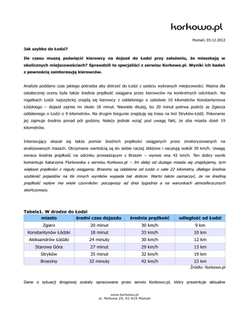 Tabela1. W drodze do Łodzi miasto średni czas dojazdu