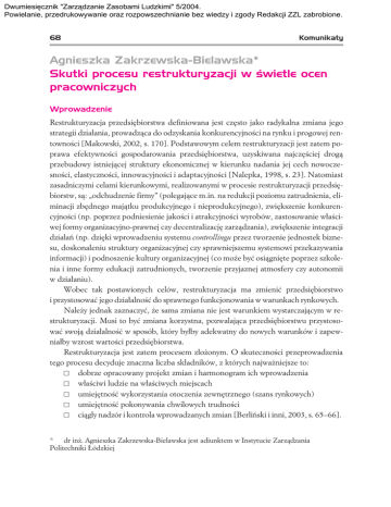 Agnieszka Zakrzewska-Bielawska* Skutki procesu restrukturyzacji w