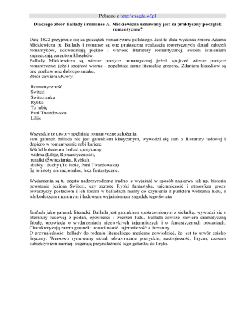 Pobrano z http://magda.of.pl Dlaczego zbiór Ballady i romanse A