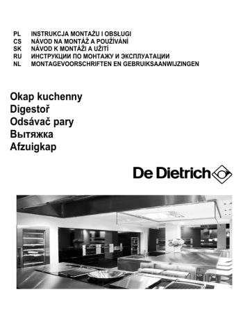 PL CS SK RU NL INSTRUKCJA MONTAŻU I OBSŁUGI NÁVOD NA MONTÁŽ A POUŽÍVÁNÍ NÁVOD K MONTÁŽI A UŽITÍ ИНСТРУКЦИИ ПО МОНТАЖУ И ЭКСПЛУАТАЦИИ MONTAGEVOORSCHRIFTEN EN GEBRUIKSAANWIJZINGEN Okap kuchenny Digestoř Odsávač pary Вытяжка Afzuigkap PL INSTRUKCJA MONTAŻU I OBSŁUGI Okap kuchenny 8 Spis treści PL - Instrukcja montażu i obsługi.............................................................................. 10 Obsługa........................................................................................................................ 10 Opis okapu................................................................................................................... 10 Przestrogi..................................................................................................................... 10 Instalacja okapu .......................................................................................................... 11 Podłączenie elektryczne ..............................................................................................................................11 Instalacja okapu ...........................................................................................................................................11 Funkcjonowanie okapu .............................................................................................. 12 Konserwacja ................................................................................................................ 12 Czyszczenie okapu ......................................................................................................................................12 Filtr przeciwtłuszczowy.................................................................................................................................12 Filtr na węgiel ( tylko dla wersji filtrującej) ....................................................................................................12 Wymiana lampek..........................................................................................................................................13 Usterki i nieprawidłowości......................................................................................... 13 Serwis posprzedażny.................................................................................................. 14 9 PL - Instrukcja montażu i obsługi A. B. C. D. E. Przy przeprowadzaniu instalacji urządzenia należy postępować według wskazówek podanych w niniejszej instrukcji. Producent uchyla się od wszelkiej odpowiedzialności za uszkodzenia wynikłe na skutek instalacji niezgodnej z informacjami podanymi w niniejszej instrukcji. Okap został zaprojektowany wyłącznie do użytku domowego. ! Należy zachować instrukcję obsługi aby móc z niej skorzystać w każdej chwili. W przypadku sprzedaży urządzenia lub przeprowadzki, należy upewnić się, że dołączono do niego instrukcję obsługi. ! Uważnie zapoznać się z treścią instrukcji obsługi, która dostarcza dokładne informacje dotyczące instalacji, użytkowania i pielęgnacji urządzenia.. ! Nie dokonywać zmian elektrycznych czy mechanicznych w urządzeniu lub na przewodach odprowadzających. Uwaga: Elementy oznaczone symbolem “(*)” wchodzą wyłącznie w skład wybranych modeli, w pozostałych przypadkach powinny być zakupione osobno. F. G. H. I. L. Szyb bocznych Listwa wspornikowa do sufitu Śruby regulacyjne drążków okapu Pokrywa dekoracyjna Puszka podłączeniowa do podłączenia do domowej sieci elektrycznej Kabel elektryczny Żarówka halogenowa Filtr z aktywnym węglem Filtr metalowy przeciwtłuszczowy Obwodowy panel zasysający Przestrogi Instrukcja obsługi powinna być przechowywana łącznie z urządzeniem. W przypadku jego dalszej odsprzedaży należy pamiętać o tym, aby wraz z urządzeniem przekazać również instrukcję obsługi. Przed przystąpieniem do montażu i obsługi niniejszego urządzenia należy uważnie przeczytać instrukcję obsługi, ponieważ zawiera ona ważne informacje dotyczące bezpieczeństwa zarówno osób obsługujących jak i zajmujących się instalacją urządzenia. Urządzenie jest przeznaczone do zainstalowania w lokalu kuchennym do normalnego użytku domowego. Nie należy używać urządzenia do celów handlowych lub przemysłowych, do których nie jest przeznaczone. Nie należy modyfikować danych technicznych urządzenia. Taka modyfikacja stanowi zagrożenie dla Państwa bezpieczeństwa. Nie dopuszcza się wykorzystania okapu nad płaszczyzną gotowania zasilaną drewnem lub węglem. Jeżeli kuchnia jest ogrzewana urządzeniem podłączonym do przewodu dymnego (np. piecem), należy zamontować okap w wersji filtrującej tj. jako wyciąg. Nie należy nigdy używać okapu bez filtra przeciwtłuszczowego. Nie używać do czyszczenia okapu czyścików parowych lub urządzeń ciśnieniowych (dla zachowania bezpieczeństwa elektrycznego). Uwaga! Nie podłączać urządzenia do sieci elektrycznej przed ukończeniem montażu. Przed wykonaniem jakiejkolwiek czynności czyszczenia lub konserwacji należy odłączyć okap od zasilania, wyjmując wtyczkę z gniazdka lub wyłączając główny wyłącznik zasilania. Wszelkie czynności montażowe i konserwacyjne wykonywać w rękawicach ochronnych. Niniejsze urządzenie nie jest przeznaczone do użytku przez osoby (w tym dzieci) o ograniczonych zdolnościach fizycznych, sensorycznych czy umysłowych, a także nieposiadające wiedzy lub doświadczenia w użytkowaniu tego typu urządzeń, chyba, że będą one nadzorowane lub zostaną poinstruowane na temat korzystania z tego urządzenia przez osobę odpowiedzialną za ich bezpieczeństwo. Dzieci należy pilnować, aby mieć pewność, że nie bawią się urządzeniem. Obsługa Okap jest przeznaczony do pracy w systemie zamkniętym i pełni funkcję pochłaniacza zapachów. Zapachy i opary są zasysane wewnątrz okapu, 