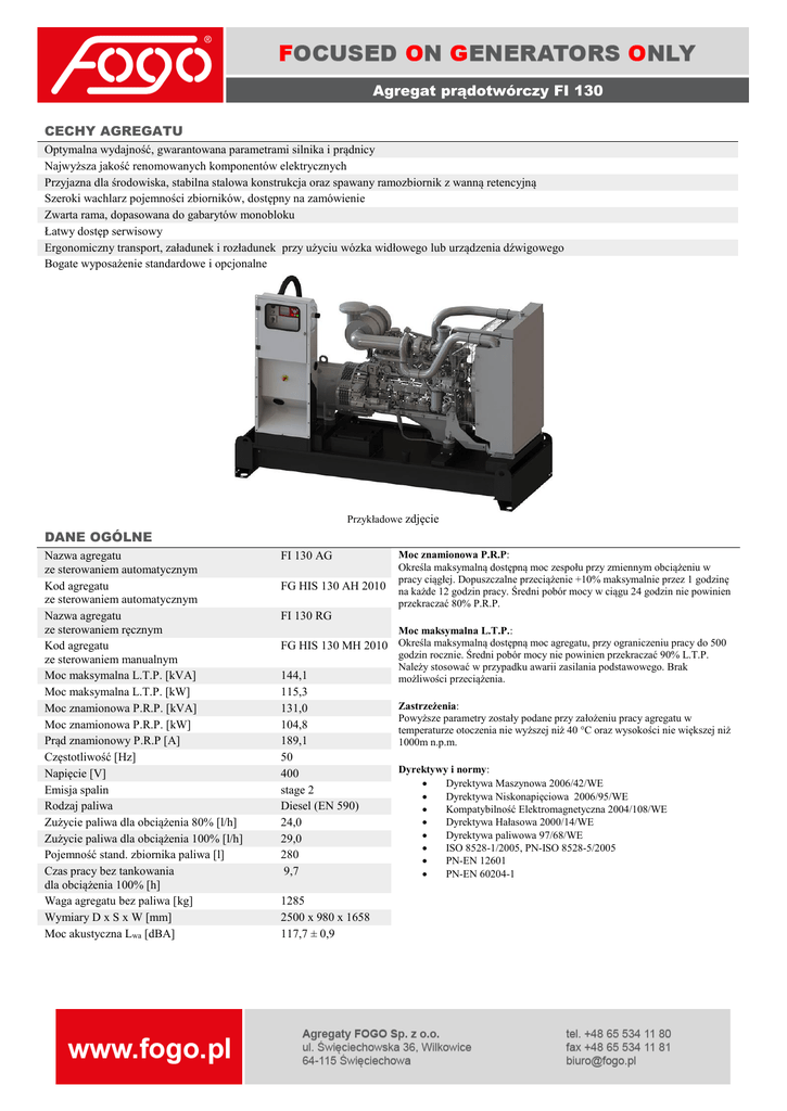 Agregat prądotwórczy FI 130 - Agregaty Prądotwórcze Fogo