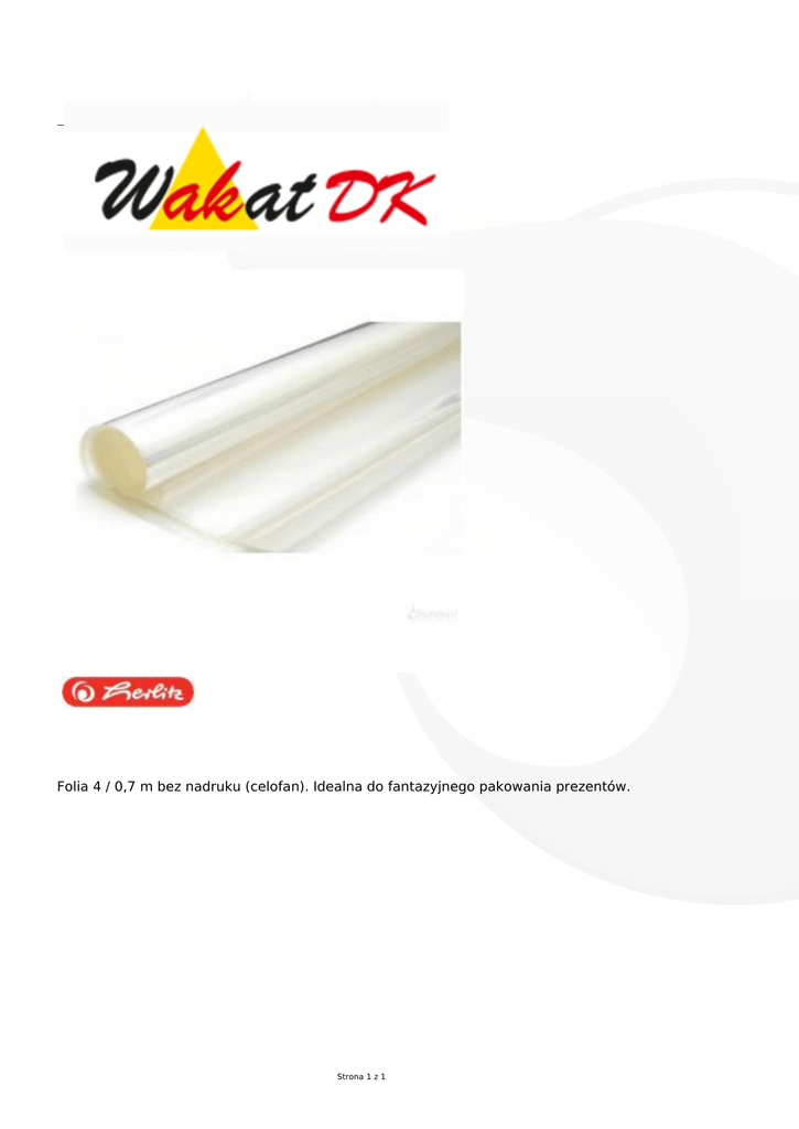 Folia 4 / 0,7 m bez nadruku (celofan). Idealna do fantazyjnego pakowania prezentów. Strona 1 z 1