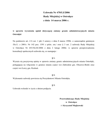 Uchwała Nr 470/LI/2006 Rady Miejskiej w Ostrołęce z