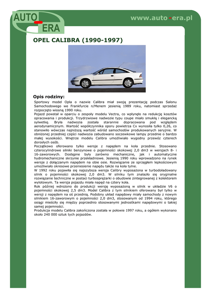 Opis rodziny: OPEL CALIBRA. - AUTO-ERA