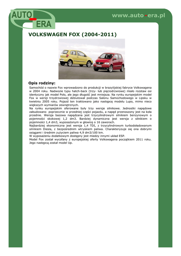 Opis rodziny: VOLKSWAGEN FOX. - AUTO-ERA