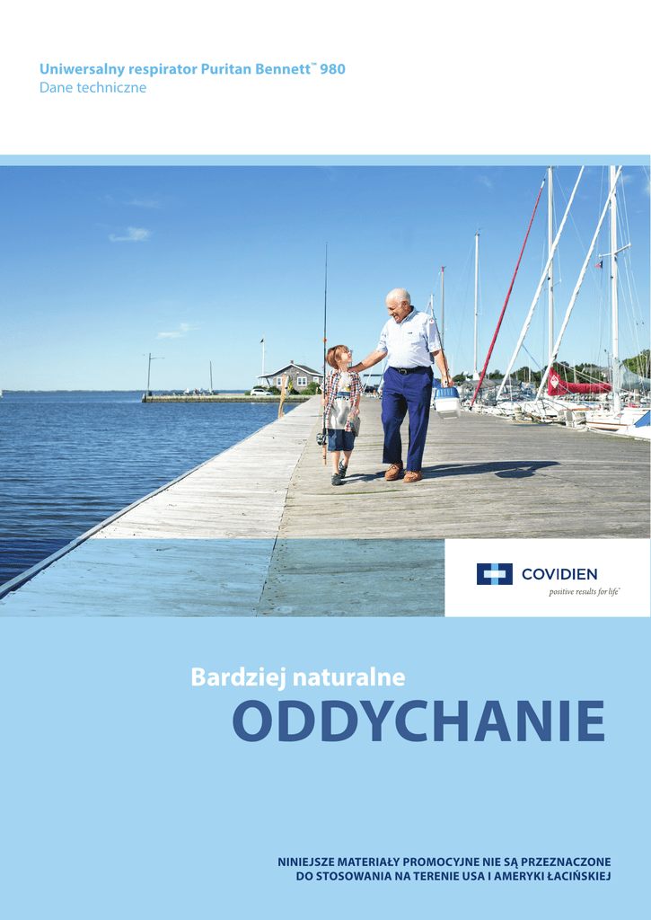 Uniwersalny respirator Puritan Bennett™ 980 Dane techniczne Bardziej naturalne ODDYCHANIE NINIEJSZE MATERIAŁY PROMOCYJNE NIE SĄ PRZEZNACZONE DO STOSOWANIA NA TERENIE USA I AMERYKI ŁACIŃSKIEJ1 Dane techniczne Dzięki innowacyjnej technologii wspomagania oddechu nowy respirator Puritan Bennett™ 980 umożliwia pacjentom bardziej naturalne oddychanie†. Opracowany przez nas prosty, bezpieczny i funkcjonalny produkt pomaga zapewnić wentylację bardziej zbliżoną do naturalnej, co może pomóc poprawić komfort pacjentów.1 PARAMETRY FIZYCZNE Masa 51,26 kg (113 funtów) wraz z modułem pneumatyki wdechowej (BDU), standardową podstawą, graficznym interfejsem użytkownika (GUI) oraz głównym akumulatorem. Sam BDU: 31,3 kg (69 funtów) Wymiary respiratora szerokość 32 cm (12,5”) x głębokość 29 cm (11,5”) x wysokość 147 cm (58”) (z ekranem GUI) Wymiary graficznego interfejsu użytkownika ekran 15” z możliwością obrotu o 170° i odchyleniem od pionu do 45° Skorygowany poziom ciśnienia akustycznego A, respirator W odległości 1 (jednego) metra nie przekracza 48 dBA przy 5 l/min Wyświetlane jednostki 2 Wyświetlane jednostki masy kilogramy (kg) lub funty (lbs) – konfigurowane przez użytkownika Wyświetlane jednostki długości centymetry (cm) lub cale (in) – konfigurowane przez użytkownika Jednostki ciśnienia hektopaskale (hPa) lub centymetry słupa wody (cmH2O) – konfigurowane przez użytkownika W porównaniu z konwencjonalną wentylacją mechaniczną (VC, VC+, PC, PS) † PARAMETRY UKŁADU PNEUMATYCZNEGO Zasilanie tlenem i powietrzem Ciśnienie: 241 do 600 kPa (35 psi do 87 psi) Przepływ: Maksymalnie 200 l/min Układ mieszania gazów Do 30 l/min przy obwodzie dla noworodków Do 80 l/min przy obwodzie dla dzieci Do 200 l/min przy obwodzie dla dorosłych (przy oddechach spontanicznych) Maksymalne ciśnienie graniczne (PLIM max) Ograniczenie ciśnienia w obwodzie do <125 cmH2O (123 hPa) przy łączniku „Y” Maksymalne ciśnienie robocze (PW max) PW max jest zagwarantowane przez górną wartość graniczną ciśnienia, gdy PI wynosi <100 cmH2O (98,07 hPa) Urządzenia pomiarowe Pomiar ciśnienia Rodzaj: Półprzewodnikowy, różnicowy przetwornik ciśnienia Punkt pomiarowy: Moduł wdechowy, moduł wydechowy Średnie ciśnienie w obwodzie: -20 cmH2O (-20 hPa) do 100 cmH2O (98 hPa) Pomiar przepływu i objętości Rodzaj: Termoanemometr foliowy Punkt pomiarowy: moduł wdechowy, moduł wydechowy Rodzaj: opcjonalny proksymalny czujnik przepływu – pomiar oparty na różnicy ciśnień Punkt pomiarowy: łącznik “Y” Pomiar stężenia tlenu Rodzaj: Ogniwo galwaniczne Punkt pomiarowy: Moduł wdechowy Okres eksploatacji czujnika stężenia tlenu Maksymalnie rok; okres eksploatacji zależy od zużycia tlenu oraz temperatury otoczenia Skuteczność filtracji Skuteczność filtracji bakterii/wirusów przez wewnętrzny i zewnętrzny filtr wdechowy ≥99,999% Skuteczność filtracji cząsteczkowej przez wewnętrzny i zewnętrzny filtr wdechowy >99,97% skuteczności wychwytywania cząsteczek o rozmiarze nominalnym 0,3 μm przy przepływie 100 l/min. Skuteczność spełniająca wymagania CDC dla klasy n100. Opory filtra wydechowego (dorośli/dzieci, wielorazowego użytku i jednorazowego użytku) <2,5 cmH2O przy 100 l/min (nowy) < 1,7 cmH2O przy 15 l/min Skuteczność filtracji bakterii/wirusów przez filtr wydechowy >99,999% Skuteczność filtracji cząsteczkowej przez filtr wydechowy >99,97% skuteczności wychwytywania cząsteczek o rozmiarze nominalnym 0,3 μm przy przepływie 100 l/min. Skuteczność spełniająca wymagania CDC dla klasy n100. Podatność i opory obwodu Podatność obwodu: Noworodki: 0,25 ml/cmH2O do 3,0 ml/cmH2O Dzieci: 1,05 ml/cmH2O do 9 ml/cmH2O Dorośli: 1,05 ml/cmH2O do 12 ml/cmH2O Opory obwodu ramienia wdechowego: Noworodki: 0,2 cmH2O do 3,5 cmH2O przy 10 l/min Dzieci: 0,2 cmH2O do 7,5 cmH2O przy 30 l/min Dorośli: 0,2 cmH2O do 12,5 cmH2O przy 60 l/min Opory obwodu ramienia wydechowego: Noworodki: 0,2 cmH2O/l/s do 3,5 cmH2O przy 10 l/min Dzieci: 0,2 cmH2O do 7,5 cmH2O przy 30 l/min Dorośli: 0,2 cmH2O do 12,5 cmH2O przy 60 l/min 3 PARAMETRY UKŁADU ELEKTRYCZNEGO Znamionowe parametry elektryczne bez sprężarki 100 V~, 50-60 Hz, 2,25 A, 225 VA 120 V~, 50-60 Hz, 1,5 A, 180 VA 220-240 V~, 50-60 Hz, 0,75 A, 180 VA Granica zabezpieczenia nadprądowego sieci zasilającej CB1: 4 A Prąd upływu uziemienia 300 μA Prąd rażeniowy 100 μA Prąd upływu pacjenta 100 μA maks. PARAMETRY OTOCZENIA Temperatura Robocza: 10°C do 40°C (50°F do 104°F) Przechowywanie: -20°C do 70°C (-68°F do 158°F) Ciśnienie atmosferyczne Robocze: 70 kPa do 106 kPa (10,15 psi do 15,37 psi) Przechowywanie: 50 kPa do 106 kPa (7,25 psi do 15,37 psi) Wysokość bezwzględna Robocza: -411,5 m do 3048 m (-1350 stóp do 10 000 stóp) Przechowywanie: 6096 m maks. (20 000 stóp maks.) Wilgotność względna Robocza: Od 10% do 95% bez skraplania Przechowywanie: Od 10% do 95% bez skraplania DANE TECHNICZNE 4 Parametr Zakres Przynależna masa ciała (predicted body weight, PBW) 3,5 kg (7,7 lbs) do 150 kg (330 lbs) 0,3 kg (0,66 lbs) do 150 kg (330 lbs) z oprogramowaniem Puritan Bennett™ 980 Universal Ventilator/NeoMode 2.0 Tryby wentylacji Tryb wspomagania/kontroli (A/C), tryb synchronizowanej przerywanej wentylacji wymuszonej (SIMV), tryb spontaniczny (SPONT), tryb dwupoziomowy (BiLevel), tryb ze stałym dodatnim ciśnieniem w drogach oddechowych (CPAP) Rodzaj oddechów wymuszonych Oddech kontrolowany objętością (VC), oddech kontrolowany ciśnieniem (PC) oraz oddech kontrolowany ciśnieniem z docelową objętością plus (VC+) Rodzaj oddechów spontanicznych Oddech wspomagany ciśnieniowo (PS), oddech wspomagany objętościowo (VS), oddech z kompensacją oporu rurki (TC) oraz oddech typu Proportional Assist™* (PAV+™*) Rodzaj wentylacji Inwazyjna lub nieinwazyjna (NIV) Wspomaganie ciśnieniowe (PSUPP) 0 cmH2O do 70 cmH2O Czas narastania % 1% do 100% Czułość wydecho