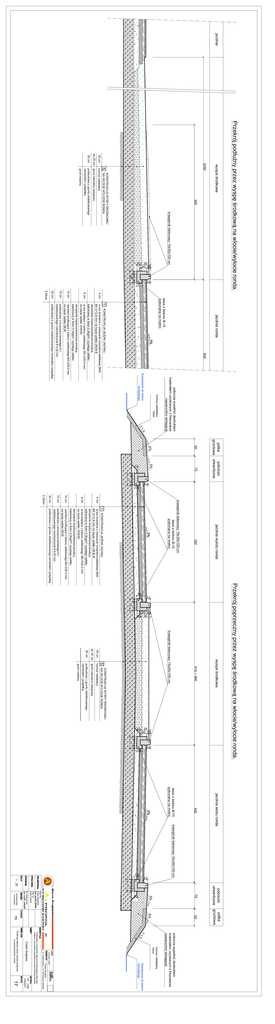 jezdnia 15 600 1 :1 ,5 5% 75 pobocze półka gruntowa utwardzone 50 6% wyspa środkowa jezdnia wlotu ronda pobocze utwardzone półka gruntowa 20 10 10 30 10 30 20 10 15 Przekrój poprzeczny przez wyspę środkową na wlocie/wylocie ronda. jezdnia wylotu ronda 50 krawężnik betonowy 15x30x100 cm PB 6% 75 ława z betonu B-15 wykonana na mokro 2% mgr inż. Adam Biegański upr. bud.Nr 245/92 mgr inż. Karol Kulawik Konstrukcyjno - inżynieryjna upr. bud.Nr 14/93/OP M. Wojtaszczyk 10 15 10 35 5% 400 krawężnik betonowy 15x30x100 cm KONSTRUKCJA WYSPY ŚRODKOWEJ NA WLOCIE.WYLOCIE RONDA 12 10 15 10 35 410 ÷ 490 12 10 15 10 35 350 krawężnik betonowy 15x30x100 cm ława z betonu B-15 wykonana na mokro 2% KONSTRUKCJA JEZDNI (NOWA) humus nakładany 5 grunt naturalny nasypowy 20 cm do 25 cm podbudowa z gruntu stabilizowanego cementem i pospółką 1 : 25 10 pobocze wypełnić destruktem materiałem uzyskanym z frezowania nawierzchni istniejącej humus nakładany 10cm Nawiązanie do terenu istniejącego 12 10 15 10 35 1 30 cm grunt rodzimy 12 jezdnia ronda 2% KONSTRUKCJA JEZDNI (NOWA) ława z betonu B-15 wykonana na mokro 1 4 cm warstwa profilująca z betonu asfaltowego BA 0/25,0 mm na bazie asfaltu DE30 6 cm w-wa ścieralna z mieszanki mineralno-asfaltowej SMA BA 0/12,8 mm na bazie asfaltu DE30 B skropienie międzywarstwowe emulsj ą kationową w ilości 0,5kg/m² czystego asfaltu w-wa wiążąca z betonu asfaltowego BA 0/20,0 mm na bazie asfaltu D35/50 10 cm podbudowa z kruszywa łamanego kl I. stabilizowanego mechanicznie # 0-32 mm skropienie mi ędzywarstwowe emulsj ą kationową w ilości 0,5kg/m² czystego asfaltu 15 cm podbudowa z gruntu stabilizowanego cementem i pospółką 15 Przekrój podłużny przez wyspę środkową na wlocie/wylocie ronda. 12 10 15 10 35 4 cm warstwa profilująca z betonu asfaltowego BA 0/25,0 mm na bazie asfaltu DE30 30 cm Σ 65cm 15 wyspa środkowa 2050 450 humus nakładany 10 cm podbudowa z kruszywa łamanego kl I. stabilizowanego mechanicznie # 0-32 mm 6 cm w-wa ścieralna z mieszanki mineralno-asfaltowej SMA BA 0/12,8 mm na bazie asfaltu DE30 B skropienie międzywarstwowe emulsj ą kationową w ilości 0,5kg/m² czystego asfaltu w-wa wiążąca z betonu asfaltowego BA 0/20,0 mm na bazie asfaltu D35/50 15 cm podbudowa z gruntu stabilizowanego cementem i pospółką skropienie mi ędzywarstwowe emulsj ą kationową w ilości 0,5kg/m² czystego asfaltu 30 cm Σ 65cm 10 krawężnik betonowy 15x30x100 cm 20 cm grunt naturalny nasypowy KONSTRUKCJA WYSPY ŚRODKOWEJ NA WLOCIE.WYLOCIE RONDA do 25 cm 5 30 cm podbudowa z gruntu stabilizowanego cementem i pospółką grunt rodzimy 10 30 20 10 15 Nawiązanie do terenu istniejącego humus nakładany 10cm pobocze wypełnić destruktem materiałem uzyskanym z frezowania nawierzchni istniejącej 1 :1 ,5 Czerwiec 2008 Powiat Strzelecki ul. Jordanowska 2, 47-100 Strzelce Opolskie Część drogowa. 17 AP - 7206 239/2007 Przebudowa i rozbudowa ciągu komunikacyjnego północnego obejścia i komunikacji gospodarczej miasta Strzelce Opolskie. Przekroje typowe przez wyspę środkową na wlocie/wylocie ronda.