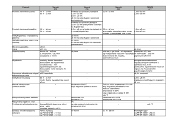 Parametr Warunki SPP Prześwit, nierówności podkład 1,0 m - ≤3 mm 2,0 m - ≤5 mm Prześwit, nierówności posadzka 1,0 m - ≤3 mm 2,0 m - ≤5 mm Odchyłki podkładu od płaszczyzny poziomej Odchyłki posadzki od płaszczyzny poziomej Styk z inną posadzką Uskok Szczeliny/spoiny - ±2 mm ≤0,3 mm drewno lite - ≤0,5 mm el. wielowarstw. - ≤0,3 mm poprzecznie ≤4 mm/m Warunki Warunki CEN/TS ITB OSP 15717 Podkłady pod posadzki przyklejane 2,0 m - ≤5 mm 1,0 m - ≤3 mm 1,0 m - ≤2 mm 2,0 m - ≤5 mm 2,0 m - ≤3 mm ≤3 mm na całej długości i szerokości pomieszczenia Podkłady pod posadzki pływające 2,0 m - ≤3 mm (maksymalnie 3 odchyłki na długości łaty) 2,0 m - ≤2 mm w liczbie nie wiekszej niż 2,0 m - ≤2 mm 1,0 m - ≤3 mm 2 na całej długości łaty w przypadku równania podłoża ≤3 mm 2,0 m - ≤5 mm mozaika, przemysłówka, bruk ≤5 mm ≤2 mm/m ≤5 mm na całej długości i szerokości ≤2 mm/m ≤3 mm na całej długości lub szerokości pomieszczenia ≤0,3 mm ≤0,4 mm ≤0,4 mm, z tym że na 1 m2 dopuszcza drewno lite - ≤0,5 mm się występowanie 3 szczelin o szerokości el. wielowarstw. - ≤0,3 mm do 0,6 mm (nie dot. mozaika, poprzecznie ≤4 mm/m przemysłówka, bruk) Wypełnienia pomiędzy dwoma elementami dopuszczalne jest wypełnienie o szerokości max. 1 mm, wypełnienie powierzchni jest dopuszczalne na nie więcej niż 2% powierzchni Poprzeczne odkształcenie wklęsłe/ ≤0,5% szerokości łódkowanie/spaczenie Odchyłki od linii prostej 2,0 m - ≤5 mm między dwoma stykającymi się pasami ≤2 mm Warunki klimatyczne w temperatura 20±3°C pomieszczeniach wzgl. wilgotność powietrza 50±5% Maksymalna wilgotność podkładu Maksymalna wilgotność ścian Przyklejenie/zwilżenie elementów Dylatacja obwodowa/szczeliny izolacyjne deszczułki i płyty łączone na pióro i wpust - >40% pozostałe elementy - >60% Parkiet pływający wg PN-EN 13489 - >10 mm wg PN-EN 13629 - >12 mm cementowe ≤3% gipsowe ≤1,5% 3% na całej powierzchni elementu (nie mniejszej niż 80%) 10-15 mm - - Podczas robót: temperatura +15/+25°C wzgl. wilgotność powietrza 45-70% Podczas użytkowania: temperatura 18-20°C wzgl. wilgotność powietrza 45-60% zob. *1 cementowe ≤2,0% CM anhydrytowe ≤0,5% CM - ok. 10 - 20 mm pomiędzy dwoma elementami dopuszczalne jest wypełnienie o szerokości max. 1 mm powierzchnia wypełnienia nie może być większa niż 2% powierzchni pojedynczego elementu ≤0,5% szerokości 2,0 m - ≤5 mm między dwoma stykającymi się pasami ≤2 mm - zob. *2 Parkiet pływający wg PN-EN 13489 - >10 mm wg PN-EN 13629 - >12 mm Parametr Dodatkowe dylatacje Zasady łączenia elementów sklejanych ze sobą Wygląd powierzchni Warunki SPP - Warunki ITB przy długości pomieszczenia powyżej 8 m lub szerokości większej od 6 m należy wykonać szczeliny dylatacyjne o szerokości 2-3 cm spoiny czołowe powinny mijać się w przesunięcie w kolejnych rzędach o stosunku do siebie co najmniej 40 cm minimum 40 cm Lakierowane: jednorodny wygląd, do wad zalicza się chropowatość, wtrącenia punktowe i wtrącenia włókien szczeciny pędzla, niedopuszczalne zacieki Olejowane: jednorodny wygląd Sposób oględzin przy odbiorze w naturalnym oświetleniu światłem rozproszonym, padającym z tyłu obserwatora Badania przy odbiorze - zgodność z umową, porównanie z odległości ok. 1 m - stan podłoża na podstawie zapisu o wykonanego parkietu z projektem i robotach zanikających szczegółami dyspozycji umownych - jakość materiałów na podstawie - zapisy w dzienniku robót dot. warunków deklaracji zgodności lub certyfikatów przystąpienia do robót zgodności dostarczonych przez dostawców - sprawdzenie wymagań technicznych (zamocowanie elementów posadzki w - zgodność wykonania posadzki z podkładzie, prawidłowość układu dokumentacją techniczną lub umową elementów w pomieszczeniu i między (porównanie posadzki z projektem za sobą, prawidłowość wykończenia przy pomocą oględzin i pomiarów) ścianach - równość i poziom posadzki - sprawdzenie wyglądu posadzki (klasa - wykończenie dylatacji wyglądu elementów, równomierność - wykończenie styków posadzek rozłożenia elementów różniących się pomiędzy pomieszczeniami lub teksturą drewna, na całej powierzchni, posadzkami wykonanymi z innych prawidłowość oszlifowania powierzchni, materiałów prawidłowość wykonania wykończenia - prawidłowe wykończenie posadzki posadzki Warunki OSP - CEN/TS 15717 - - - Niedopuszczalne wady widoczne z Do wad zalicza się chropowatość, pozycji stojącej: rysy po szlifowaniu, wtrącenia punktowe i wtrącenia włókien wybrania od maszyny (dot. nowych szczeciny pędzla, niedopuszczalne parkietów), ślady po malowaniu pędzlem, zacieki wałkiem lub blachą, plam, przebarwień, Uwagi: Plamy spowodowane silikonem dużych skupisk pyłków, grudek, bądź są niedopuszczalne, nie zawsze jednak włosów powstają one w związku z robotami parkieciarskimi na stojąco lub siedząco, w normalnych w naturalnym oświetleniu i ze światłem warunkach oświetleniowych panujących rozproszonym, padającym z tyłu w danym pomieszczeniu obserwatora do oceny lub stwierdzenia wad na powierzchni posadzki nie można wykorzystywać światła padającego pod kątem, sztucznych źródeł światła i światła padającego bezpośrednio (nierozproszonego) zob. *3 - staranny przegląd posadzki wspólnie z klientem - przy ocenie całościowej należy uwzględnić ogólny wygląd i wrażenie optyczne posadzki Uwagi* *1 podane parametry zawarte są w punkcie „Ocena podłoża” i dotyczą parametrów powietrza przy montażu posadzki. W punkcie „Warunki użytkowania podłóg” podana jest wyłącznie temperatura 18-20°C powietrza, brak zalecanej względnej wilgotności powietrza. W punkcie „Warunki gwarancji” zalecane parametry powietrza w pomieszczeniu wynoszą: 45-60% względnej wilgotności powietrza, temperatura 18-20°C. *2 w n