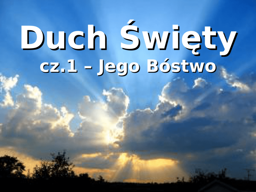Duch Święty cz.1 – Jego Bóstwo „Lecz ja wam mówię prawdę: Lepiej dla was, żebym ja odszedł. Bo jeśli nie odejdę, Pocieszyciel do was nie przyjdzie, jeśli zaś odejdę, poślę go do was” (Jana 16,7) Wierzę w Ducha Świętego, Pana i Ożywiciela, który od Ojca i Syna pochodzi, który z Ojcem i Synem wspólnie odbiera uwielbienie i chwałę. Inna jest bowiem osoba Ojca, inna Syna, inna Ducha Świętego, lecz Ojca, Syna i Ducha Świętego jedno jest Bóstwo, równa chwała, współwieczny majestat. I nic w tej Trójcy nie jest wcześniejsze, lub późniejsze, nic większe lub mniejsze, lecz Trzy Osoby w całości są tak samo wieczne i zupełnie równe. „A w ostatnim, wielkim dniu święta stanął Jezus i głośno zawołał: Jeśli kto pragnie, niech przyjdzie do mnie i pije. Kto wierzy we mnie, jak powiada Pismo, z wnętrza jego popłyną rzeki wody żywej. A to mówił o Duchu Świętym, którego mieli otrzymać ci, którzy w niego uwierzyli” (Jana 7,37-39)