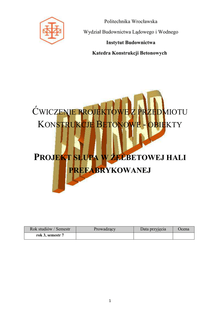 PROJEKT SŁUPA W ŻELBETOWEJ HALI