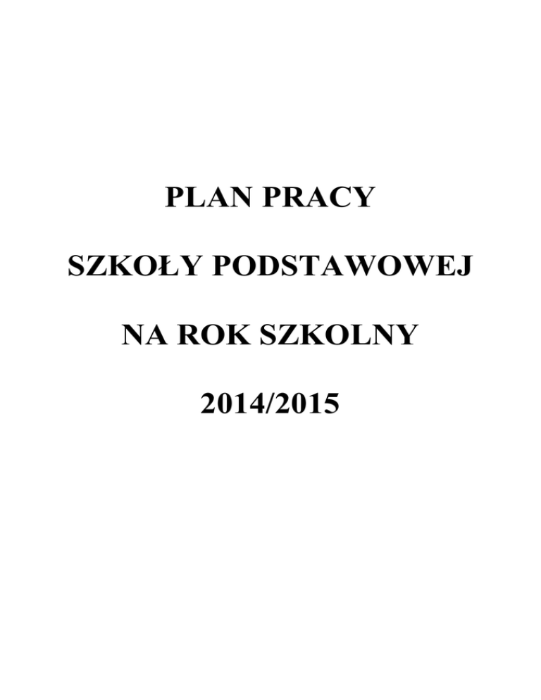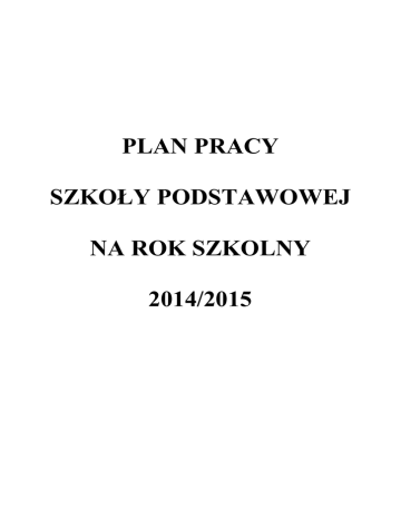 PLAN PRACY SZKOŁY PODSTAWOWEJ NA ROK SZKOLNY 2014/2015 Podstawowe dane dotyczące Szkoły Podstawowej 1. Ilość uczniów ogółem – 183 2. Ilość oddziałów ogółem - 9 Pracownicy obsługi szkoły 1. Gielewicz Bożena 2. Wielgórska Marzena 3. Wereda Teresa 4. Anusiewicz Urszula 5. Dadacz Krystyna 6. Michalak Wioletta 7. Celińska Danuta 8. Trojanowska Halina 9. Podniesińska Teresa 10. Janeczek Anna 11.Próchnicki Krzysztof - referent - referent - intendent - kucharka - pomoc kucharki - pomoc kucharki - sprzątaczka - sprzątaczka - sprzątaczka - sprzątaczka - woźny szkolny Przydział wychowawstw na rok szkolny 2014/2015 Lp. Nazwisko i imię 1. 2. 3. 4. 5. 6. 7. 8. 9. 10. 11. Żelazowska Elżbieta Rajkowska Grażyna Bastecka Ewa Stańczuk Alicja Krupa Beata Sikorska Małgorzata Kowalczyk Janina Chaciak Krystyna Prokopczuk Janina Kazimierczak Ewa Ostanek Edyta 12. 13. 14. 15. 16. 17. 18. 19. 20. 21. 22. Dutkowska Maria Bielak Waldemar Braszczyński Paweł Rostkowski Grzegorz Gadomska Magdalena Litwiński Robert Kowalczyk Dorota Jakimowicz Artur Bortnowska Aldona Tarach Beata Matczak van Maciejewska Katarzyna Kowalska Elżbieta Nowak Hanna Krzyżanowska Beata Pałka Małgorzata 23. 24. 25. 26. Klasa dyrektor szkoły, nauczyciel języka polskiego wicedyrektor szkoły, nauczyciel przyrody wychowawca kl. I a , edukacja wczesnoszkolna wychowawca kl. I b , edukacja wczesnoszkolna wychowawca kl. I c , edukacja wczesnoszkolna wychowawca kl. II a, edukacja wczesnoszkolna wychowawca kl. II b, edukacja wczesnoszkolna wychowawca kl. III, edukacja wczesnoszkolna wychowawca kl. IV, nauczyciel historii wychowawca kl. V , nauczyciel języka polskiego wychowawca kl. VI, nauczyciel języka angielskiego nauczyciel języka angielskiego nauczyciel informatyki, techniki nauczyciel – katecheta nauczyciel muzyki, plastyki nauczyciel języka angielskiego nauczyciel w- fiz nauczyciel w- fiz, wdż nauczyciel w- fiz nauczyciel języka polskiego nauczyciel matematyki psycholog logopeda nauczyciel- bibliotekarz wychowawca świetlicy wychowawca świetlicy HARMONOGRAM POSIEDZEŃ RADY PEDAGOGICZNEJ SZKOŁY PODSTAWOWEJ W ROKU SZKOLNYM 2014/2015 Termin Tematyka, porządek posiedzenia Osoby odpowiedzialne 1. Podanie i przyjęcie porządku posiedzenia Rady Pedagogicznej. Dyrektor szkoły 2. Przyjęcie protokołu z ostatniego posiedzenia Rady Pedagogicznej. Rada Pedagogiczna 3. Zapoznanie z projektami planów pracy na rok szkolny 2014/2015. Rada Pedagogiczna 4. Zaopiniowanie zmian w arkuszu organizacyjnym na rok szkolny 2014/2015. Dyrektor szkoły 5. Zaopiniowanie tygodniowego rozkładu zajęć i czynności dodatkowych. Rada Pedagogiczna 6. Sprawy różne. Dyrektor szkoły SIERPIEŃ 7. Uchwały i wnioski 1. Podanie i przyjęcie porządku posiedzenia Rady Pedagogicznej. Dyrektor szkoły 2. Przyjęcie protokołu z ostatniego posiedzenia Rady Pedagogicznej. Rada Pedagogiczna 3. Zatwierdzenie planów pracy szkoły na rok szkolny 2014/2015 Rada Pedagogiczna 4. Sprawy różne Dyrektor szkoły 5. Uchwały i wnioski Dyrektor szkoły WRZESIEŃ Osoby współodpowiedzialne 1. Podanie i przyjęcie porządku posiedzenia Rady Pedagogicznej. Dyrektor szkoły 2. Przyjęcie protokołu z ostatniego posiedzenia Rady Pedagogicznej. Rada Pedagogiczna Nauczyciele przedmiotów Wychowawcy klas Wychowawcy klas PAŹDZIERNIK 3. Międzyokresowa analiza stanu dydaktyczno – wychowawczego / LISTOPAD szkoły. 4. Opieka nad dziećmi z rodzin o trudnej sytuacji materialnej 5.Zmiany w prawie oświatowym 6. Sprawy rożne Dyrektor szkoły Dyrektor szkoły 7. Uchwały i wnioski 1. Podanie i przyjęcie porządku posiedzenia Rady Pedagogicznej. Dyrektor szkoły 2. . Przyjęcie protokołu z ostatniego posiedzenia Rady Pedagogicznej. Rada Pedagogiczna 3.Klasyfikacja za I semestr roku szkolnego 2014/2015 Wychowawcy klas 4. Działalność organizacji szkolnych. Opiekunowie organizacji STYCZEŃ 5. Analiza stanu dydaktyczno – wychowawczego za I semestr roku szkolnego 2014/2015 Wicedyrektor szkoły 6. U wagi o pracy szkoły za I semestr Dyrektor szkoły roku szkolnego 7. Wnioski do pracy w II semestrze Przewodniczący zespołów przedmiotowych 8. Sprawy rożne Dyrektor szkoły 9. Uchwały i wnioski Nauczyciele przedmiotów KWIECIEŃ 1.Podanie i przyjęcie porządku posiedzenia Rady Pedagogicznej Dyrektor szkoły 2. Przyjęcie protokołu z ostatniego posiedzenia Rady Pedagogicznej. Rada Pedagogiczna 3. Międzyokresowa analiza stanu dydaktyczno – wychowawczego szkoły. Wychowawcy klas 4. Powołanie zespołów do prac związanych z zakończeniem roku Dyrektor szkoły szkolnego 2014/2015 i rozpoczęciem roku szkolnego 2015/2016. 5. Zaopiniowanie arkuszy organizacyjnych na rok szkolny 2015/2016. Nauczyciele przedmiotów Wychowawcy klas III Rada Pedagogiczna 6. Zaopiniowanie szkolnego zestawu Dyrektor szkoły programów nauczania oraz podręczników na rok szkolny 2015/2016. Dyrektor szkoły 7. Sprawy różne. 8. Uchwały i wnioski. CZERWIEC 1.Podanie i przyjęcie porządku posiedzenia Rady Pedagogicznej Dyrektor szkoły 2. Przyjęcie protokołu z ostatniego posiedzenia Rady Pedagogicznej. Rada Pedagogiczna 3. Realizacja programu nauczania w roku szkolnym 2015/2016. Nauczyciele przedmiotów Dyrektor szkoły 4. Klasyfikacja uczniów i jej zatwierdzenie za rok szkolny 2014/2015. Wychowawcy klas Rada Pedagogiczna 5. Program zakończenia roku szkolnego 2014/2015 Rada Pedagogiczna Gimnazjum 6. Sprawy różne. Dyrektor szkoły 7. Uchwały i wnioski. CZERWIEC 1.Podanie i przyjęcie porządku posiedzenia Rady Pedagogicznej Dyrektor szkoły 2. Przyjęcie protokołu z ostatniego posiedzenia Rady Pedagogicznej. Rada Pedagogiczna 3. Sprawozdanie z działalności organizacji szkolnych Opiekunowie organizacji 4. Analiza realizacji zadań dydaktyczno – wychowawczych w roku szkolnym 2014/2015 Dyrektor szkoły 5. Zapoznanie z projektem planu pracy na rok szkolny 2015/2016. Przewodniczący zespołów 6. Podsumowanie pracy szkoły za rok szkolny 2014/2015. Dyrektor szkoły 7.