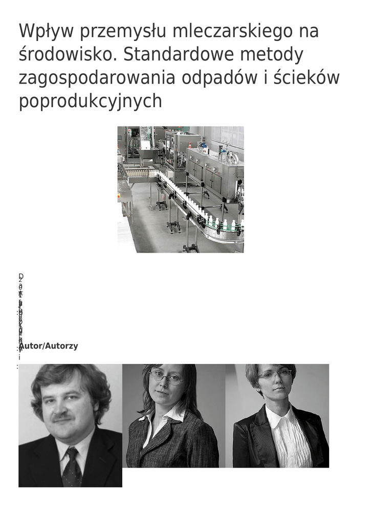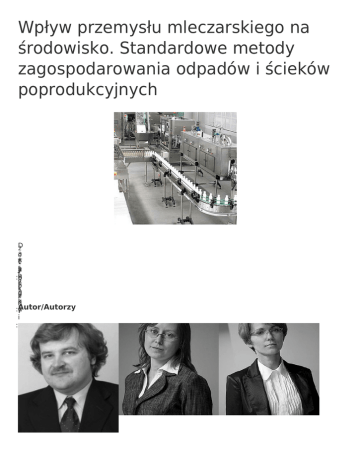 Wpływ przemysłu mleczarskiego na środowisko. Standardowe metody zagospodarowania odpadów i ścieków poprodukcyjnych D 2 a 0 A t T 1 rp 5 a Jy :to-ę d p y l0 zo k s1 d y u k a iłk 0 y :Autor/Autorzy in 7 i :a Marcin Bizukojć Dziedzina nauk technicznych View more Karina Michalska Dziedzina nauk technicznych View more Anna Pazera View more Abstrakt W niniejszym opracowaniu przedstawione zostały podstawowe informacje dotyczące produkcji zakładów mleczarskich ze szczególnym uwzględnieniem wytwarzanych przez nie strumieni odpadowych: odpadów organicznych oraz ścieków. Szczególną uwagę poświęcono sposobom postępowania z tymi strumieniami odpadowymi. Przedstawiono tradycyjne sposoby zagospodarowania serwatki poprzez różne sposoby jej recyklingu oraz zagadnienia oczyszczania ścieków z zakładów mleczarskich w różnych układach technologicznych. Pliki do pobrania / Linki Pełna treść publikacji do pobrania Strona CBI Pro-Akademia używa ciasteczek (cookies), dzięki którym nasz serwis może działać lepiej. Zobacz