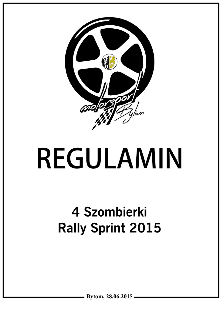 4 Szombierki Rally Sprint 2015 Bytom, 28.06.2015 Regulamin 4 Szombierki Rally Sprint 2015 SPIS TREŚĆI: 1. 2. 3. 4. 5. 6. 7. 8. 9. 10. 11. 12. 13. 14. 15. 16. 17. PROGRAM ZAWODÓW USTALENIA OGÓLNE MIEJSCE ZAWODÓW ORGANIZATOR ZGŁOSZENIA I OBOWIĄZKI ZAŁOGI WPISOWE UBEZPIECZENIE NUMERY IDENTYFIKACYJNE – STARTOWE ORAZ REKLAMA PODZIAŁ KLAS BADANIA ADMINISTRACYJNE BADANIA KONTROLNE ODPRAWA UCZESTNIKÓW I START META IMPREZY NAGRODY PROTESTY ZESTAW KAR NIEREGULAMINOWYCH POSTANOWIENIA KOŃCOWE str. 2 Regulamin 4 Szombierki Rally Sprint 2015 1. PROGRAM ZAWODÓW 1. Przyjęcia zgłoszenia załóg 2. Badanie kontrolne 3. Zapoznanie z trasą 4. Odprawa uczestników 5. Start pierwszej załogi Pętla 1 godz. godz. godz. godz. godz. 7 00 - 8 15 7 00 - 8 30 7 00 - 9 20 09 30 10 00 a) OS 1 Giełda Towarowa (start co minutę), godz. 10 08 b) OS 2 Szombierki Stadion (start co minutę), godz. 10 17 20 6. Start Pierwszej załogi Pętla 2 godz. 11 a) OS 3 Giełda Towarowa (start co minutę), godz. 11 28 b) OS 4 Szombierki Stadion (start co minutę), godz. 11 37 40 7. Start pierwszej załogi Pętla 3 godz. 12 a) OS 5 Giełda Towarowa (start co minutę), godz. 12 48 b) OS 6 Szombierki Stadion (start co minutę), godz. 12 57 30 8. Ogłoszenie wyników i rozdanie pucharów godz. 15 * Podane godziny są godzinami orientacyjnymi W/W godziny są obowiązkowe i niezmienne dla wszystkich (w szczególnych przypadkach decyduje organizator). 2. USTALENIA OGÓLNE 1. Zawody odbędą się 28.06.2015. – Impreza zostanie przeprowadzona w ciągu jednego dnia i składa się z dwóch prób sportowych pokonywanych trzykrotnie o łącznej długości 22,5km , z czego 10,5 km prób sportowych. 2. Jedno zapoznanie do jednej próby sportowej. 3. MIEJSCE ZAWODÓW Biuro Zawodów – Bytom, ul Frycza-Modrzewskiego 5a, hala sportowa „Na Skarpie” Próby sportowe : - OS 1/3/5 Giełda Towarowa: infrastruktura byłej giełdy towarowej ul. Małgorzatki - OS 2/4/6 Szombierki Stadion: parkingi należące do T.S „Szombierki Bytom” wraz z przyległymi uliczkami i elementami infrastruktury Parku Maszyn znajduje przy Zespole Szkół Technicznych i Ogólnokształcących w Bytomiu ul. Frycza Modrzewskiego 5 (ze względu na rodzaj nawierzchni w parku maszyn, prędkość pojazdów poruszających się po terenie parkingu została ograniczona do 5 km/h! Niestosowanie się do tego zalecenia skutkować będzie wykluczeniem z zawodów) 4. ORGANIZATOR IMPREZY MotorSport Bytom w składzie: • Mariusz Mrozek, • Mikołaj Byrski, • Dawid Grabowski. 5. ZGŁOSZENIA I OBOWIĄZKI ZAŁOGI 1. Zgłoszenia będą przyjmowane od 10.06.2015 r. pocztą elektroniczną za pomocą wypełnionego formularza zgłoszeniowego na adres organizatora ([email protected]) do dnia 27.06.2015 r. do godz. 2359, oraz w dniu zawodów 28.06.2015r. 2. Jeżeli zgłoszenie wysłane jest pocztą e-mail, oryginał musi dotrzeć do organizatora najpóźniej w dniu odbioru administracyjnego. Oryginał zgłoszenia musi być czytelny i podpisany przez obydwu członków załogi. 3. Na stronie organizatora (www.motorsport.bytom.pl) pojawiać się będzie aktualizacja listy startowej, na której umieszczane będą tylko te załogi, które prawidłowo wypełniły formularz zgłoszeniowy i dokonały wpłaty wpisowego. 4. Załogę stanowią dwie osoby określane, jako kierowca i pilot, kierowca musi posiadać prawo jazdy, a pilot ukończone 17 lat. 5. Przejazd trasy imprezy wg. podanego przez organizatora planu trasy, wg. numerów startowych, zgodnie z ustalonym harmonogramem czasowym. Uczestnicy muszą bezwzględnie podporządkować się wszystkim poleceniom osób zabezpieczających trasę rajdu. 6. W przypadku jakiejkolwiek kolizji lub innego zdarzenia na trasie odcinka zawodnik jest zobowiązany, do zjechania na pobocze drogi (placu) w oczekiwaniu na pomoc medyczną lub pomoc techniczną, powiadamiając telefonicznie o tym zdarzeniu biuro zawodów – numer str. 3 Regulamin 4 Szombierki Rally Sprint 2015 7. 8. 9. 10. 11. 12. 13. 14. alarmowy telefonu 517 668 786 lub w przypadku wystąpienia jakiegokolwiek zagrożenia bezpieczeństwa ,np.: wtargnięcia na zamknięty odcinek drogi kibiców, ludzi postronnych, zawodnik jest zobowiązany do natychmiastowego zaprzestania jazdy sportowej, poinformowania o tym zdarzeniu najbliższego sędziego, zjechania spokojnie do mety odcinka informując sędziego na mecie o zdarzeniu jakie miało miejsce na trasie. W sytuacji zauważenia czerwonej flagi, natychmiastowe przerwanie rajdu, wszyscy STOP, w takiej sytuacji przejazd zostaje powtórzony, Odbycie wszystkich prób zręcznościowych w zapiętych pasach bezpieczeństwa, zapiętych kaskach ochronnych, z włączonymi światłami mijania i zamkniętymi szybami. Nieprzestrzeganie powyższego pociągnie za sobą karę wykluczenia z imprezy. Do zawodów zostaną dopuszczone tylko załogi w pojazdach z ważnymi dokumentami uprawniającymi do poruszania się po drogach publicznych (ważny dowód rejestracyjny, prawo jazdy, ubezpieczenie OC i NNW) – do udziału w imprezie dopuszcza się wyłącznie samochody osobowe w rozumieniu Prawa o Ruchu Drogowym Załogi biorą udział w zawodach na własne ryzyko, Organizator nie ponosi żadnej odpowiedzialności za szkody i straty powstałe u zawodników oraz w stosunku do osób trzecich i mienia, w razie wypadku lub wyrządzenia szkody załoga winna zgłosić ten fakt na mecie odcinka i pisemnie w Biurze Zawodów. Przez fakt podpisania zgłoszenia załoga zrzeka się wszelkich praw do odszkodowania mogących wyniknąć w związku z wypadkiem. Ze względu na pojemność trasy, maksymalna liczba załóg ograniczona jest do 75. W przypadku zgłoszenia się większej ilości zawodników (ponad 75), decydować będzie data i godzina wpłacenia wpisowego na konto organizatora, Organizator może odmówić bez podania przyczyny przyjęcia zgłoszenia. 6. WPISOWE 1. Wpisowe wynosi odpowiednio w terminach: - 1 termin zapłaty: od 10.06.2015 do 14.06.2015r. – 160 PLN - 