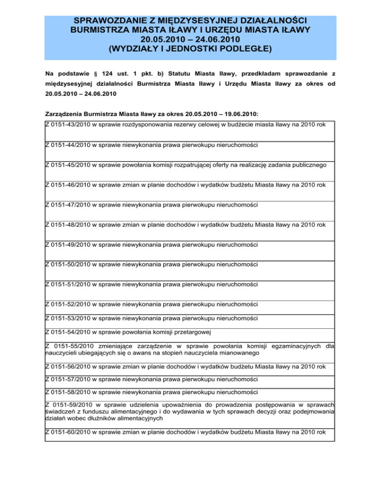 sprawozdanie z międzysesyjnej działalności burmistrza miasta iławy